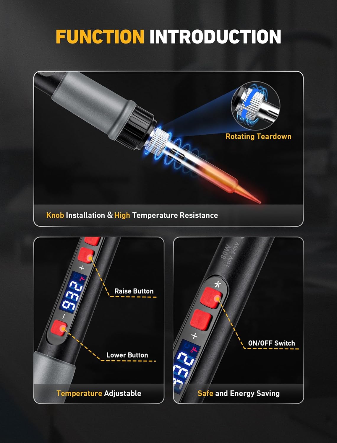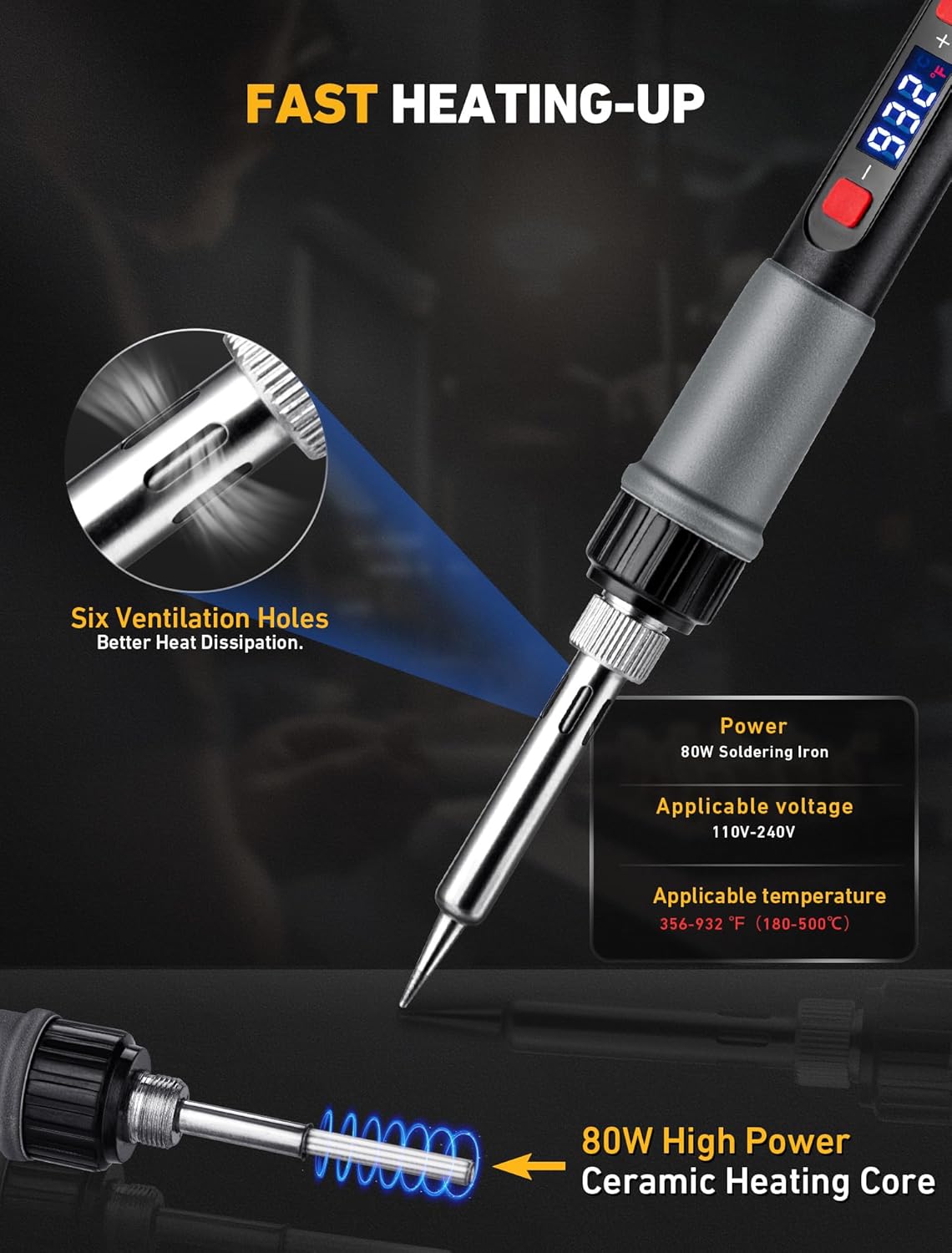 **Power Output**: At 80W, this tool provides substantially more power than many 30-40W alternatives. We noticed the difference immediately in heat-up time and temperature stability during extended use.