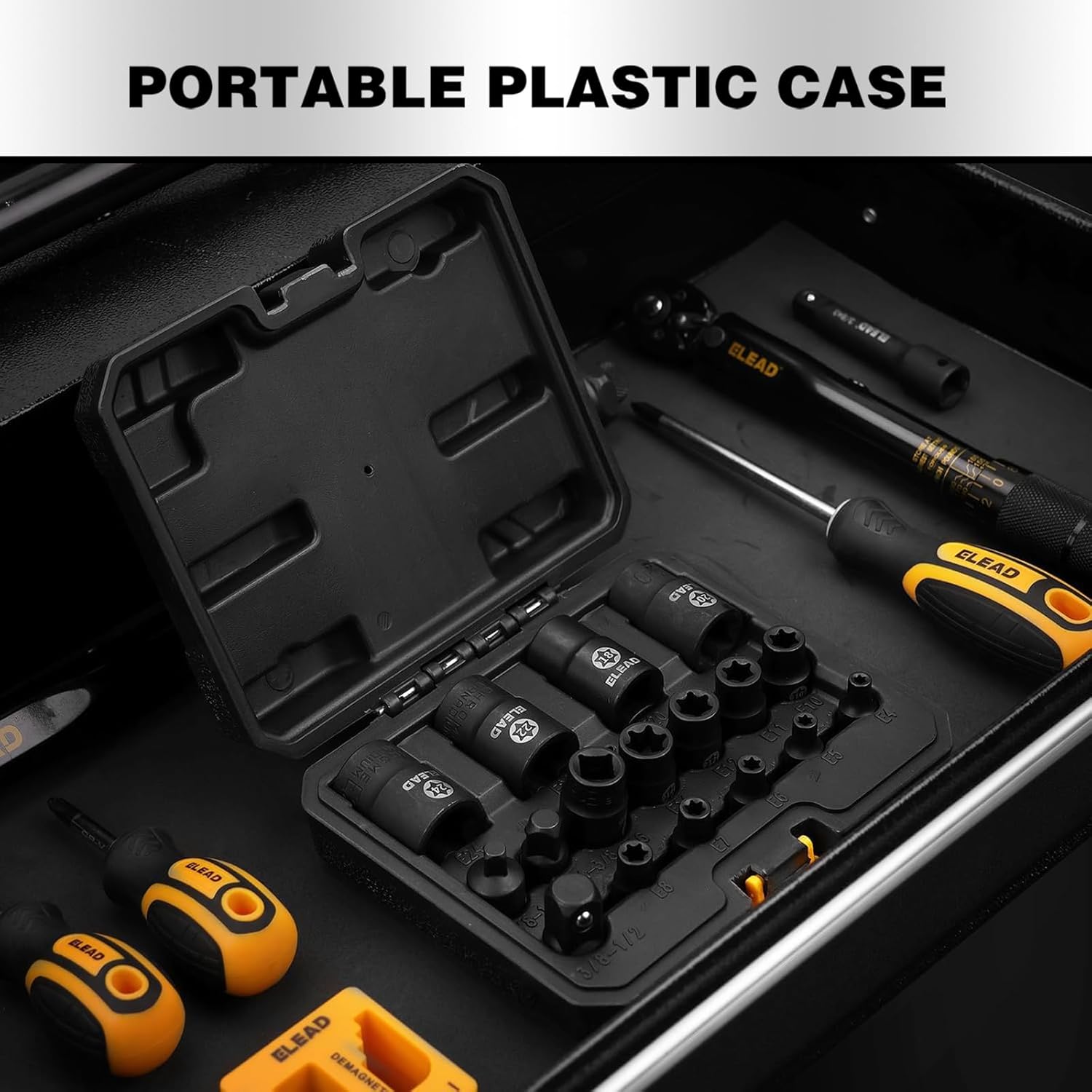 We intentionally dropped the case from workbench height (accidents happen) multiple times during testing. The latches held firm, and not a single socket came loose. The compact design fits easily in a toolbox drawer or can be carried to the job site without taking up excessive space.