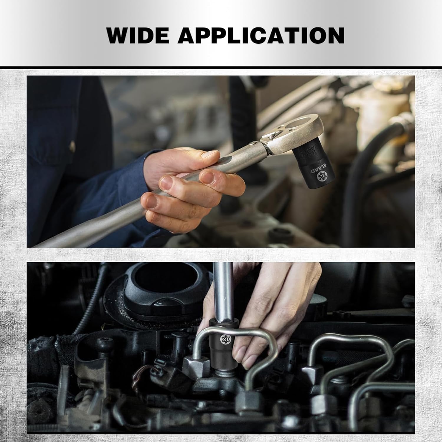 The larger sizes (E20, E22, E24) utilize a robust 1/2-inch drive, ready for heavy-duty applications and impact wrench use. These handled high-torque situations without any signs of wear or rounding.