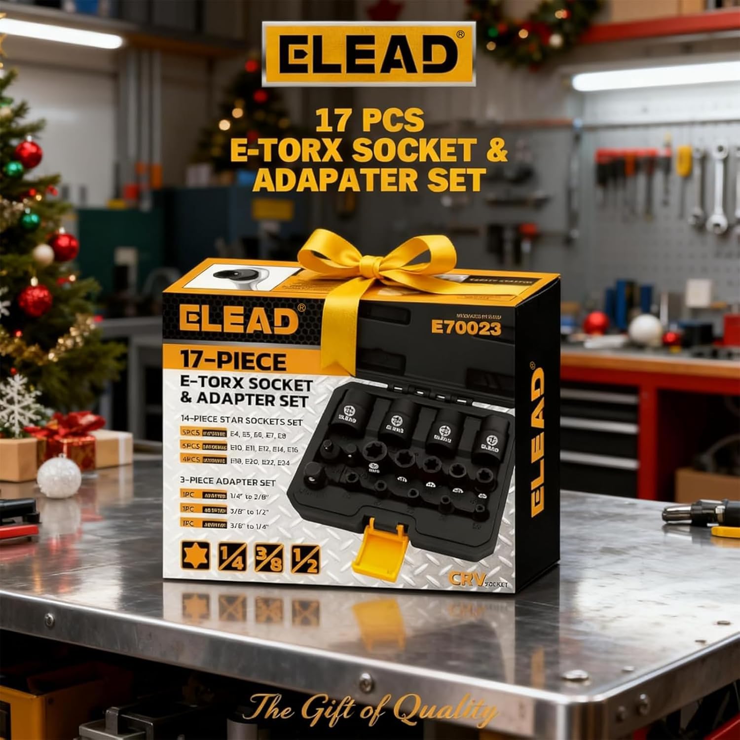 Professional 17-piece inverted E-Torx socket set with premium Cr-V steel construction. Features E4-E24 star sockets for 1/4″, 3/8″, 1/2″ drives. Impact-rated for precision torque work. Includes organized storage case.