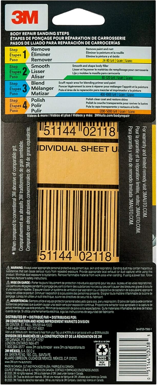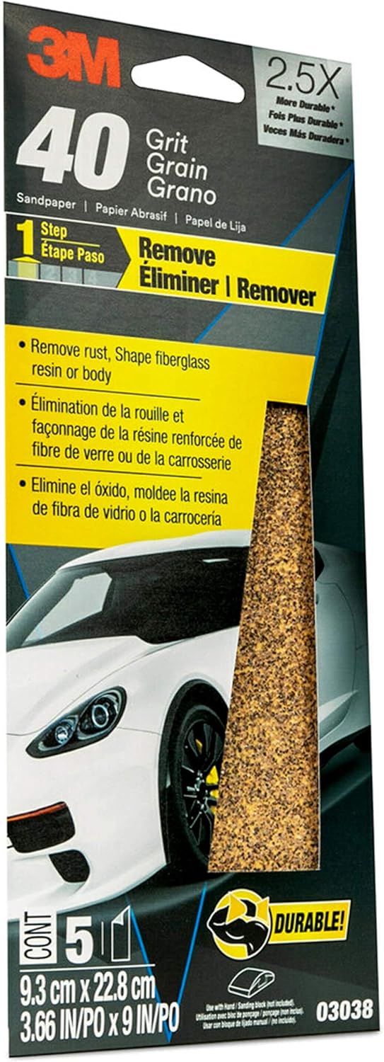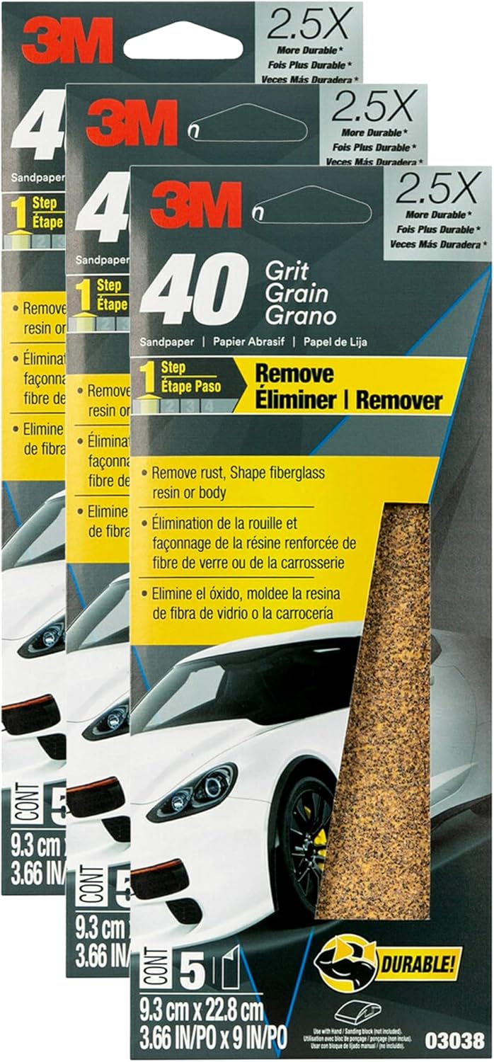 Tackle tough sanding jobs with 3M’s heavy-duty 40 grit sandpaper. Extra-coarse sheets perfect for rapid material removal on wood, metal, and more. Durable, long-lasting performance in a convenient 5-sheet pack.