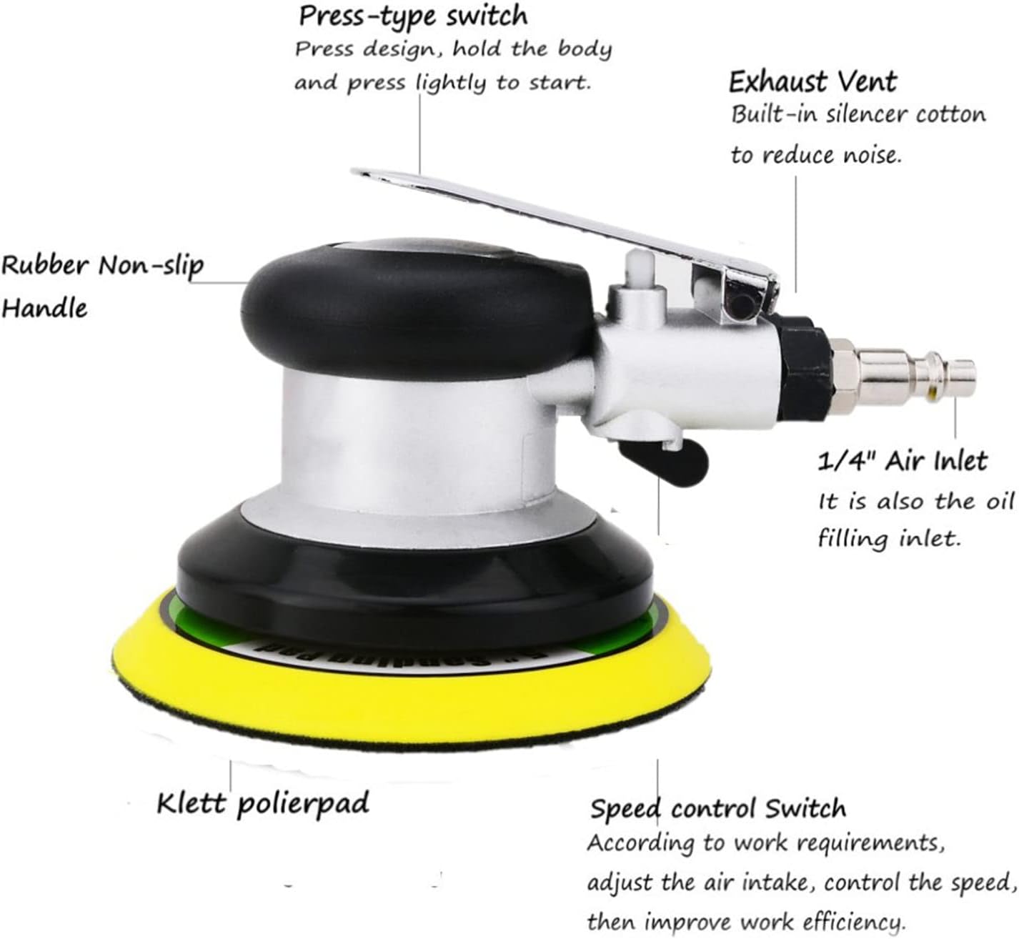 6″ Pneumatic Dual Action Air Sander 12000RPM Heavy Duty Orbital