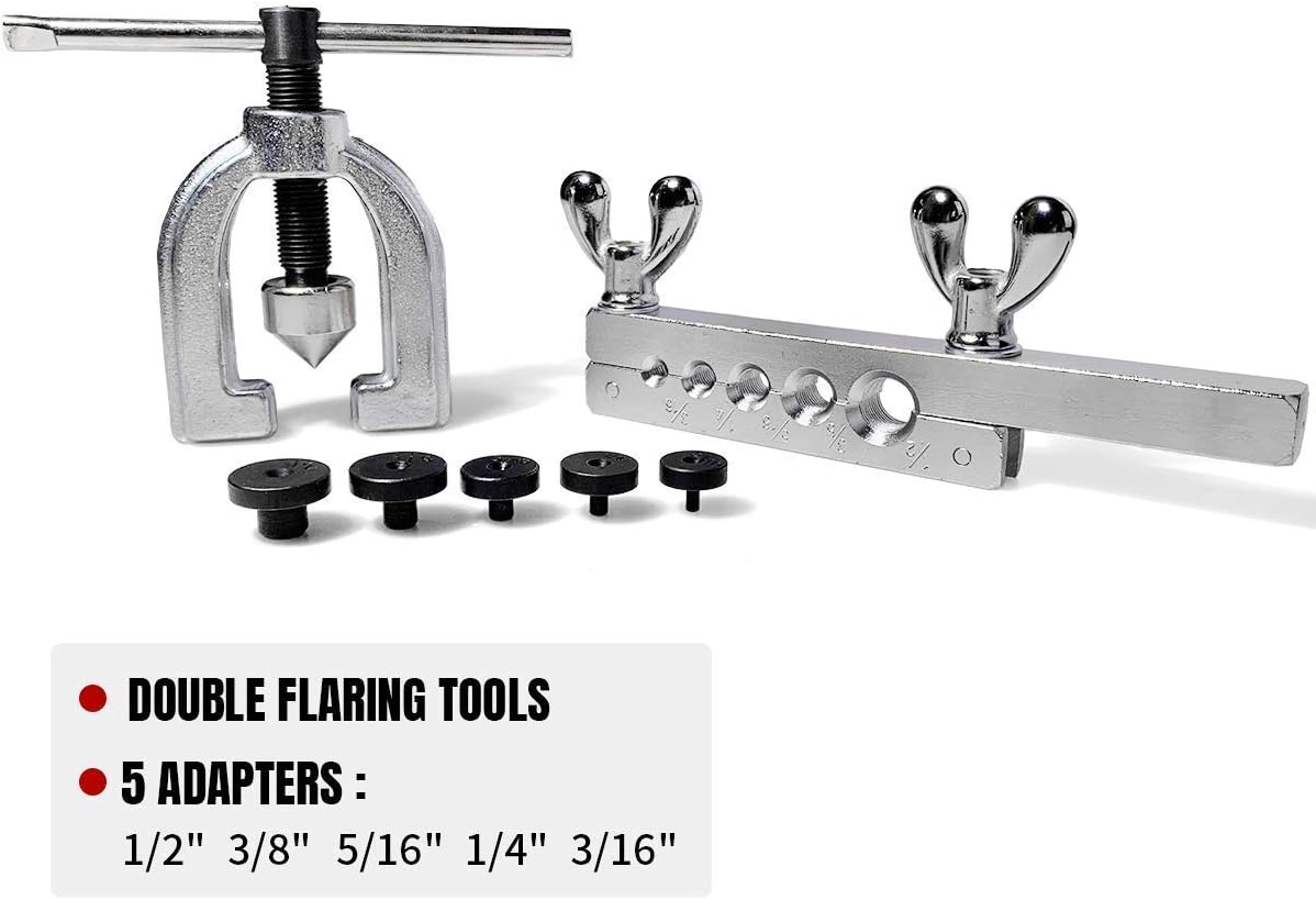 This kit promises to handle both double flares (the standard for most brake applications) and single 45-degree flares for brass and copper tubing, all while including extra adapters that supposedly expand its versatility. After using it on everything from vintage car restorations requiring 3/16″ brake lines to modern truck brake repairs with 1/4″ and 5/16″ lines, we’ve developed a clear picture of where this tool excels and where it falls short.