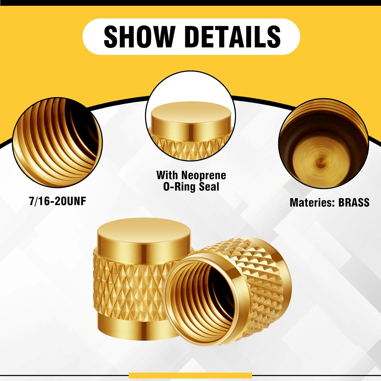 Brass Flare Valve Caps 100-Pack HVAC Refrigerant O-Ring Compression Seals