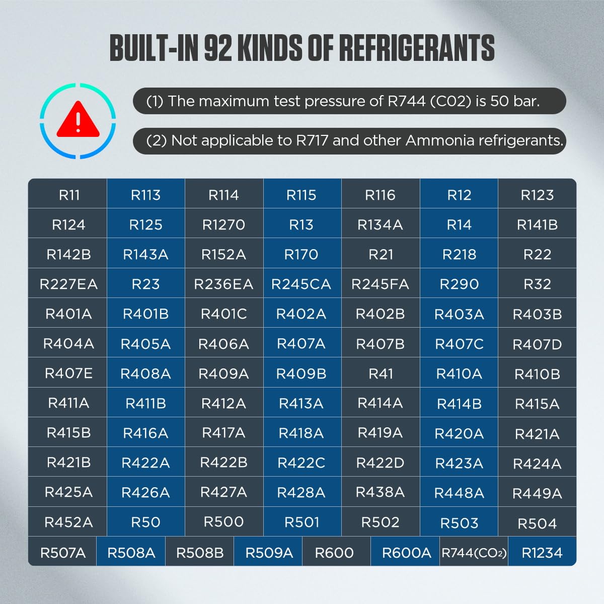 Unmatched Refrigerant Compatibility: 92 Refrigerant Support