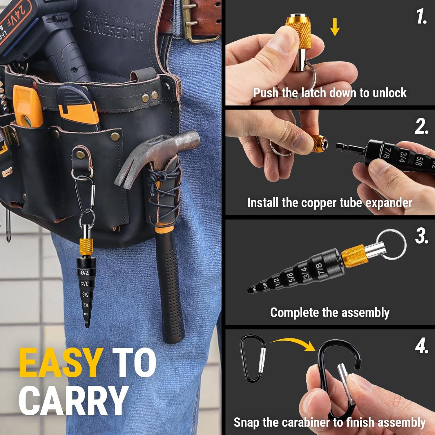 Master any HVAC job with this versatile 6-in-1 copper swaging tool. Expands 1/4″ to 7/8″ pipes with precision while the included drill bit set and carabiner keep everything organized. Perfect for professionals and DIYers tackling AC tubing repairs.