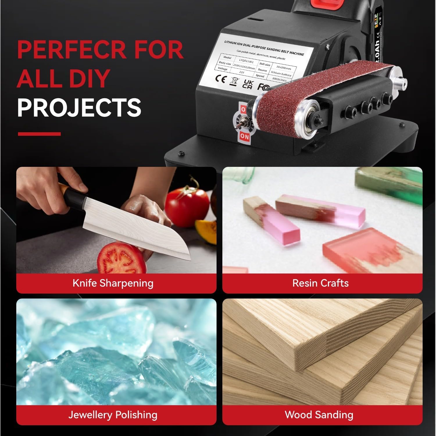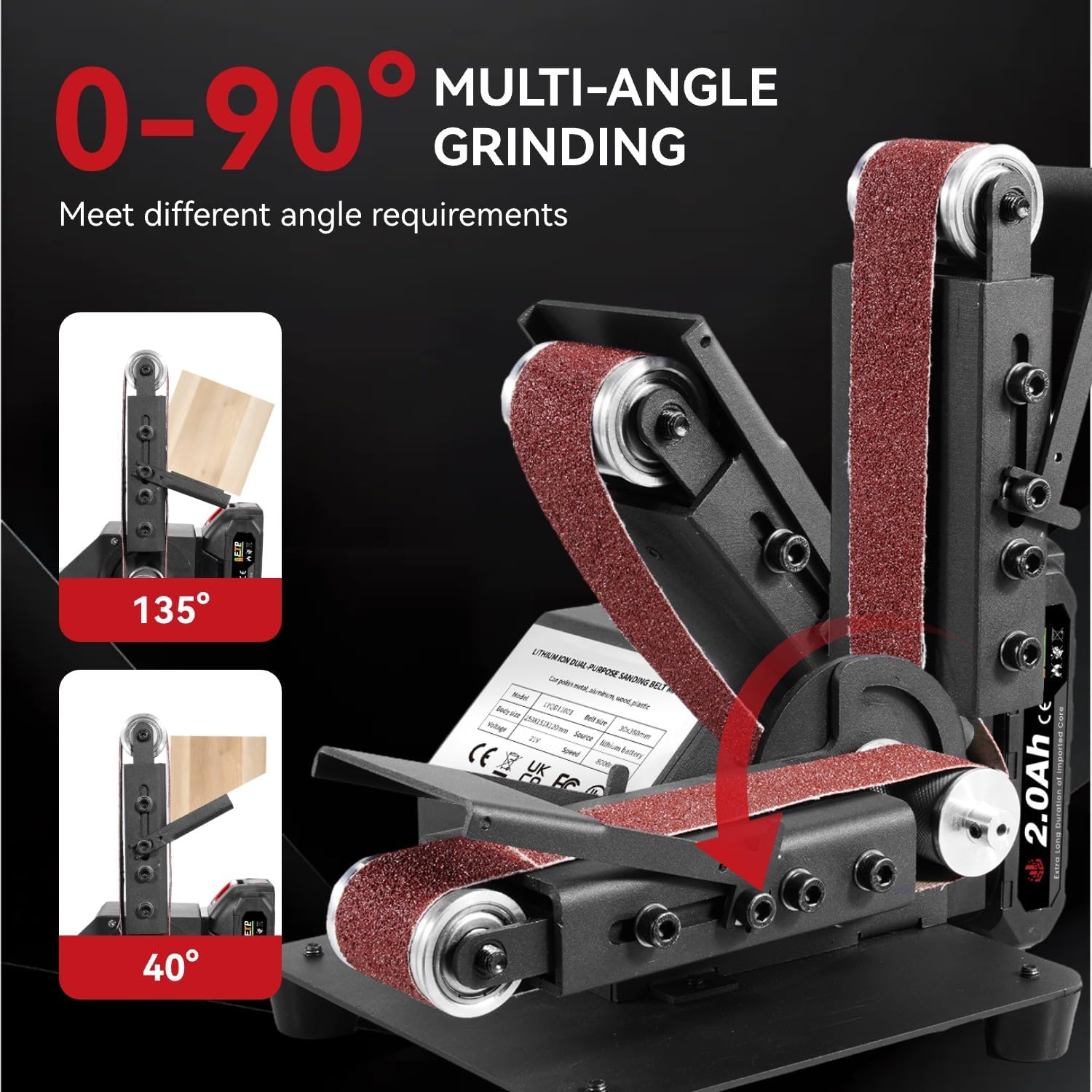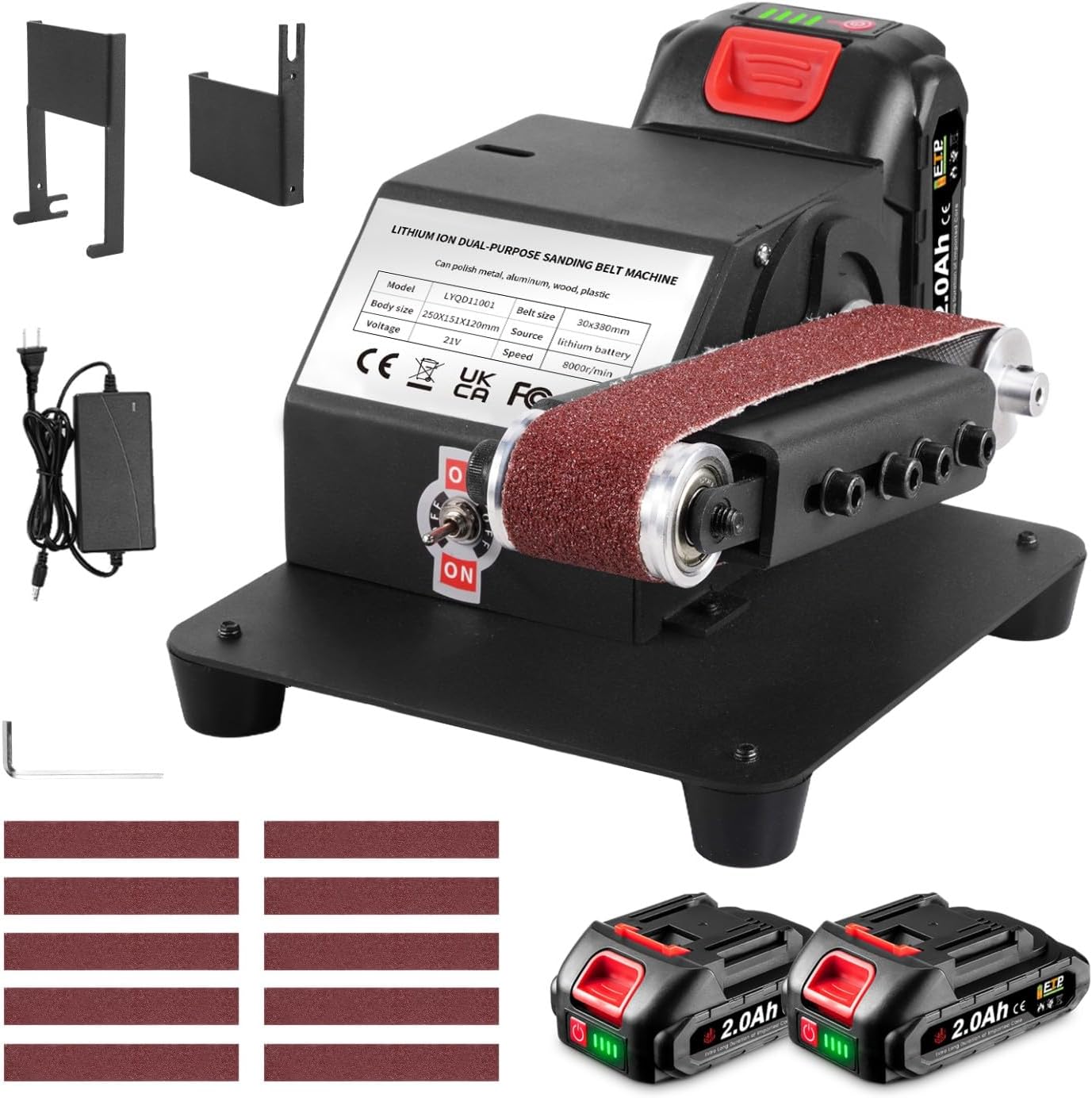 Compact cordless belt sander with dual 2000mAh batteries for ultimate portability. Perfect for sharpening tools, knives, and smoothing metal or wood. Ideal for DIY projects and handcrafts anywhere.