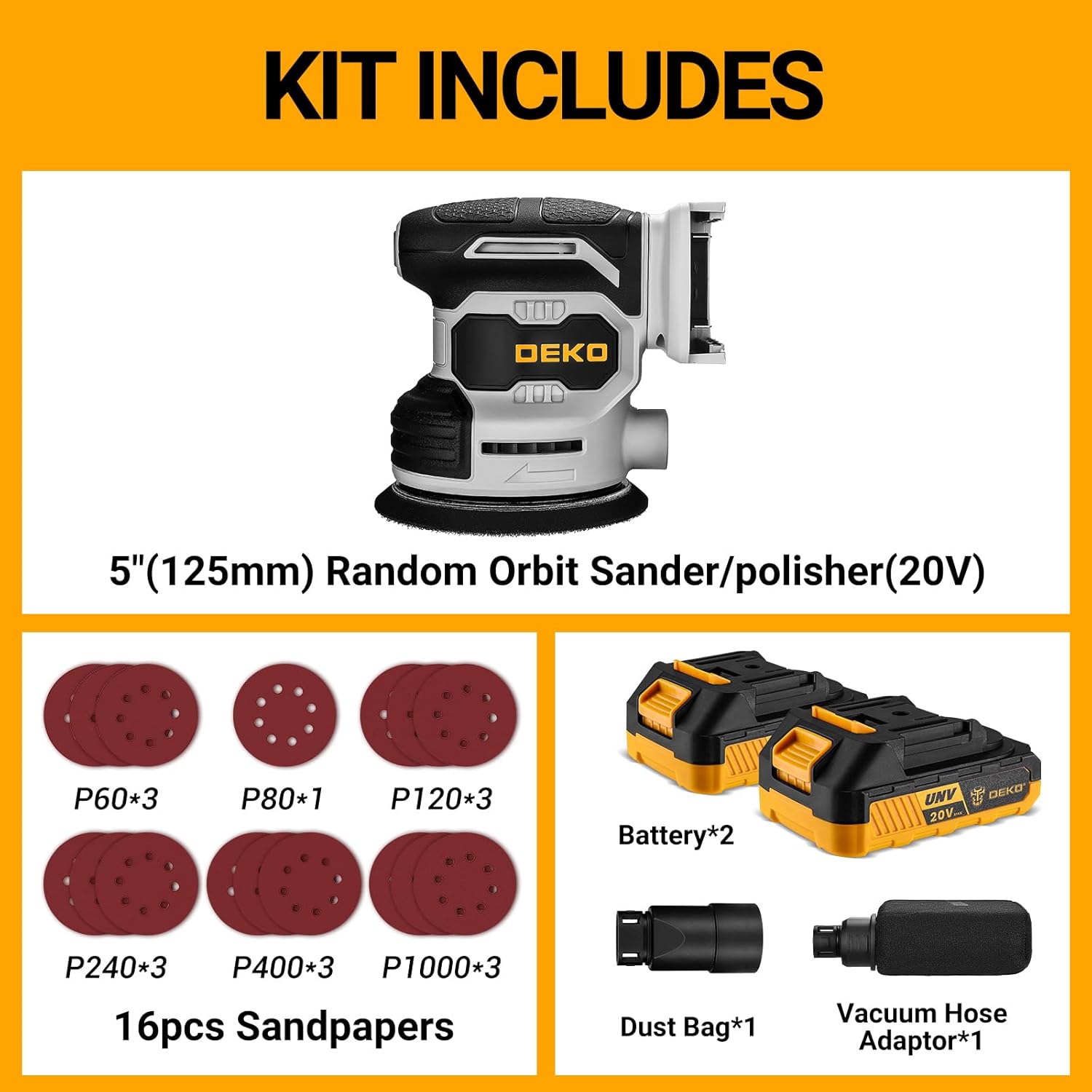 - Complete kit eliminates additional purchases: Two batteries, charger, dust collector, and 16 sanding discs mean you start working immediately after unboxing—no frustrating trips to buy accessories