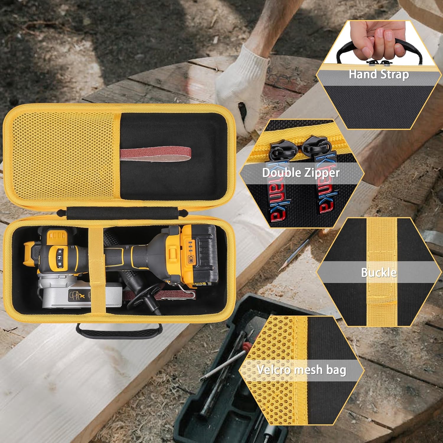 During our comprehensive review, we put this Khanka case through its paces. The case’s robust construction immediately stood out – it’s clearly built to withstand the demands of professional contractors and DIY enthusiasts alike. The interior foam padding provides a snug, shock-absorbing environment that cradles your DEWALT sander, preventing any potential damage during transportation.