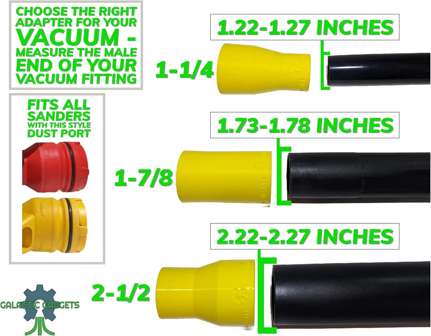 After extensive testing and reviewing customer feedback, we can confidently say that the Galactic Gadgets Vacuum Adapter for DeWalt Sanders (1-1/4 inch) is an essential addition to any workshop. This dewalt sander vacuum adapter 1-1/4 inch delivers on its promises of superior dust collection, perfect fit, and durable construction.