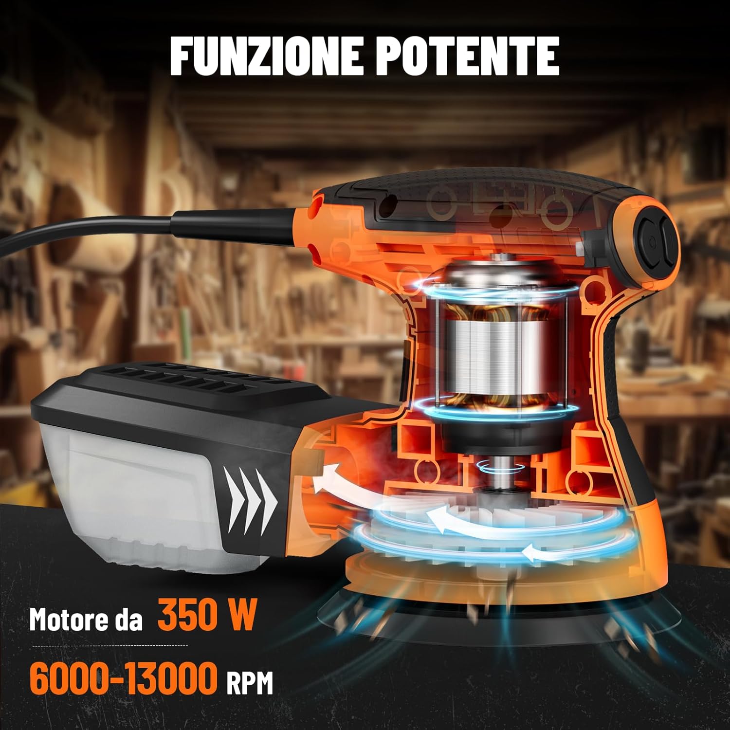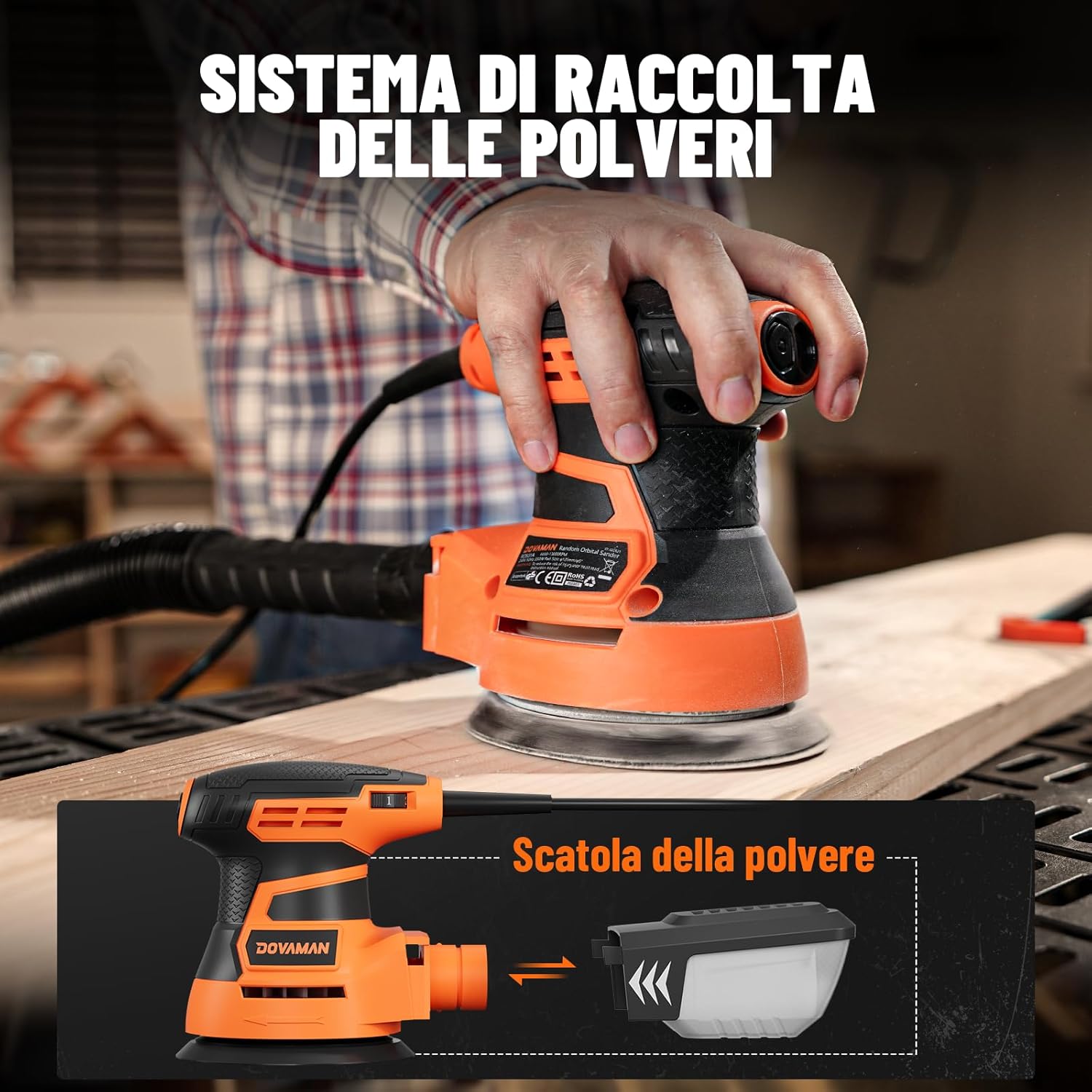Levigatrice potente e maneggevole, con motore da 350W e 6 velocità regolabili per adattarsi a diversi tipi di lavorazione. Offre ottima stabilità e controllo, con aspirazione della polvere efficaceDopo diversi mesi di utilizzo, posso dire che questa levigatrice orbitale DOVAMAN ROS01A si è rivelata un ottimo acquisto. La uso regolarmente per lavori su legno e occasionalmente su metallo, e finora funziona perfettamente.