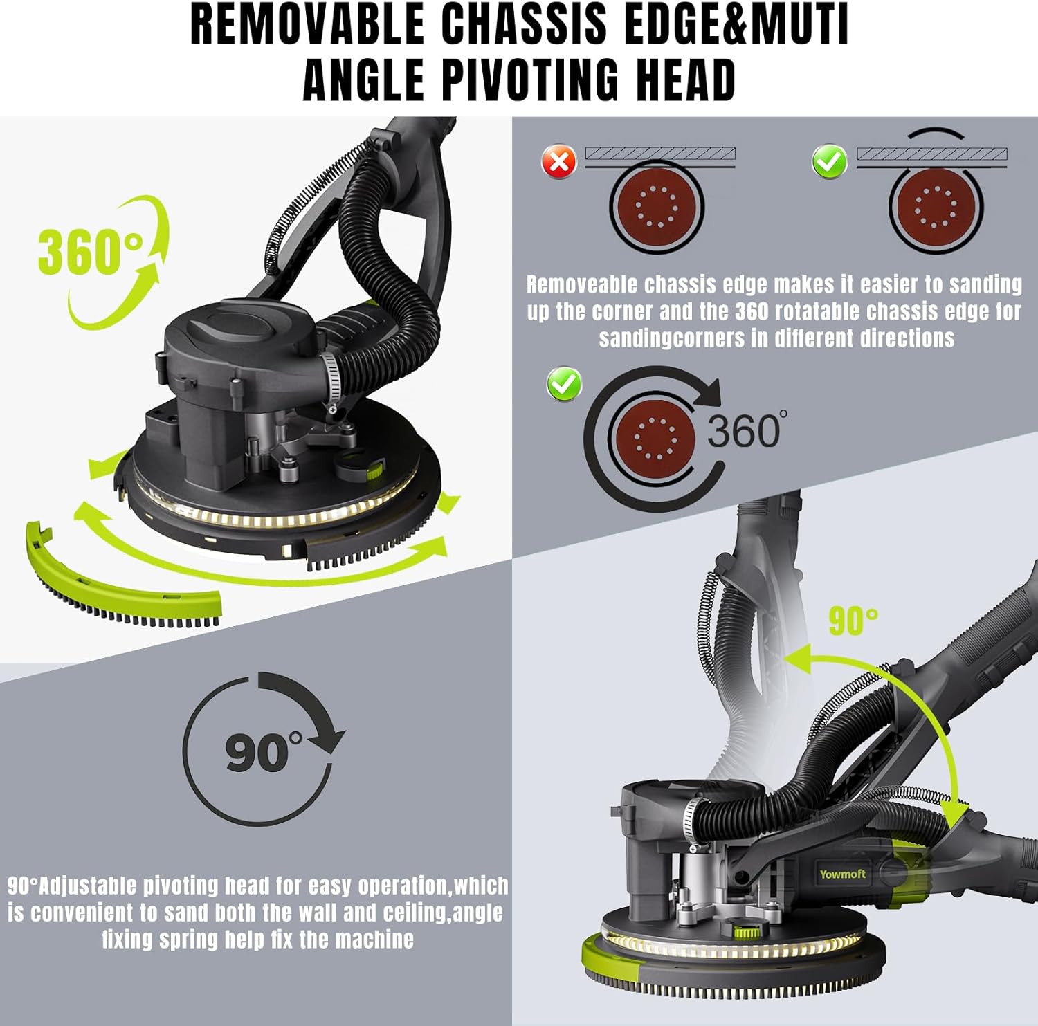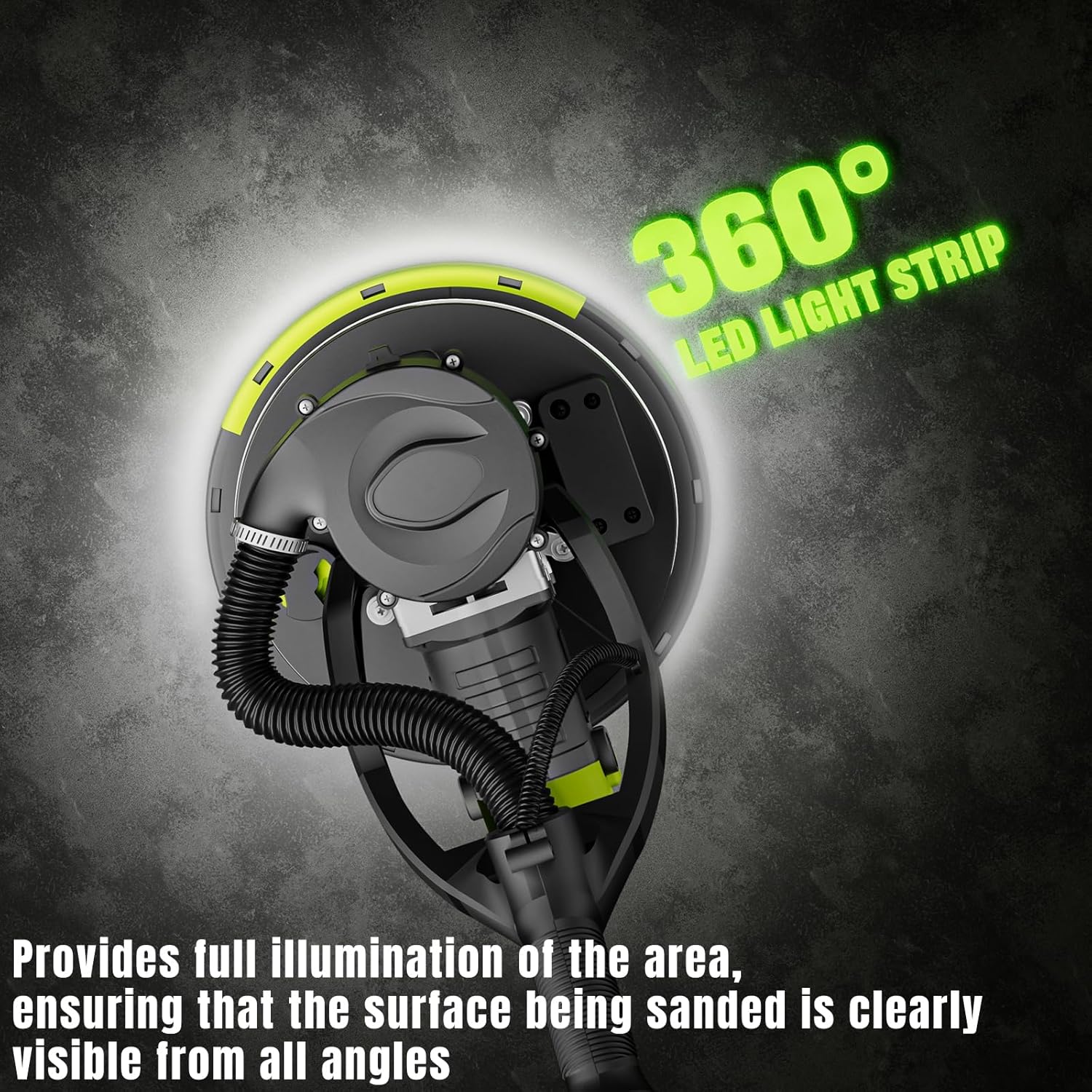 880W Drywall Sander with Vacuum Dust Collection and LED Light