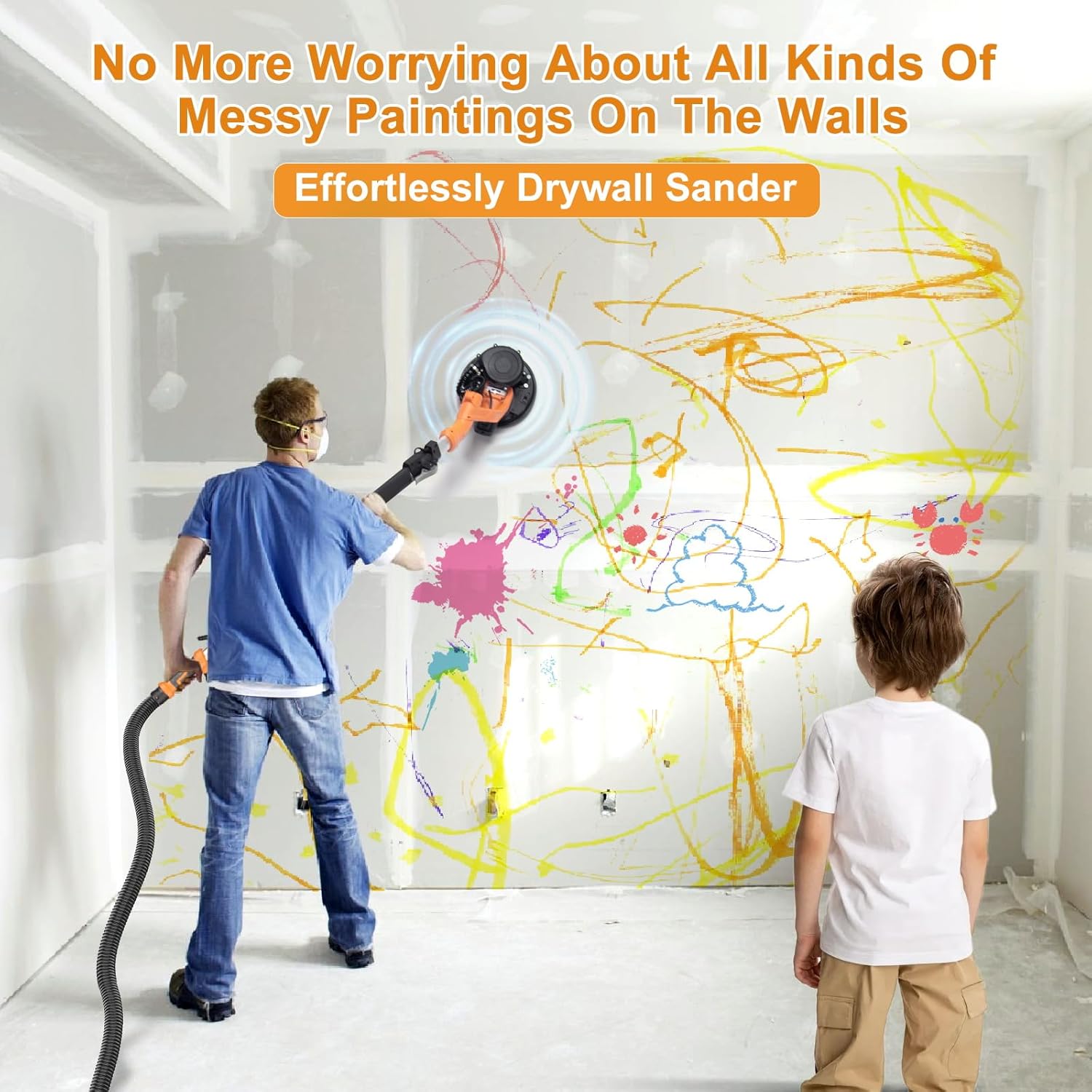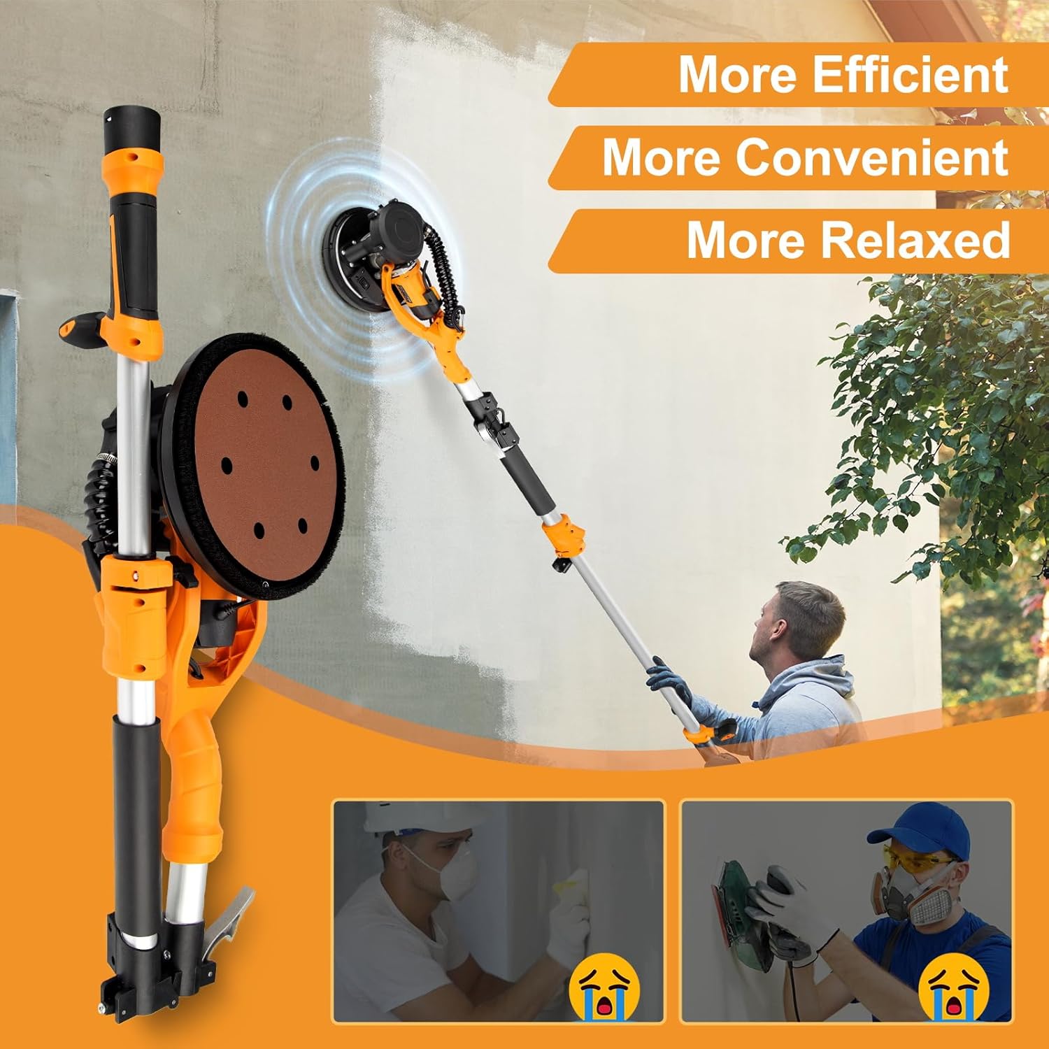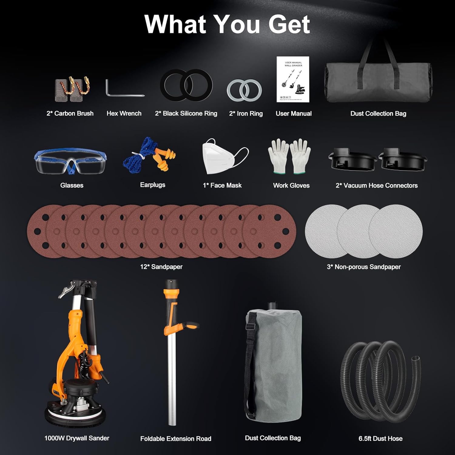 1000W electric drywall sander with automatic dust collector, LED light & 6-speed control. Includes 15 sanding discs. Perfect for walls & popcorn ceilings. Clean, efficient sanding at 2200RPM!