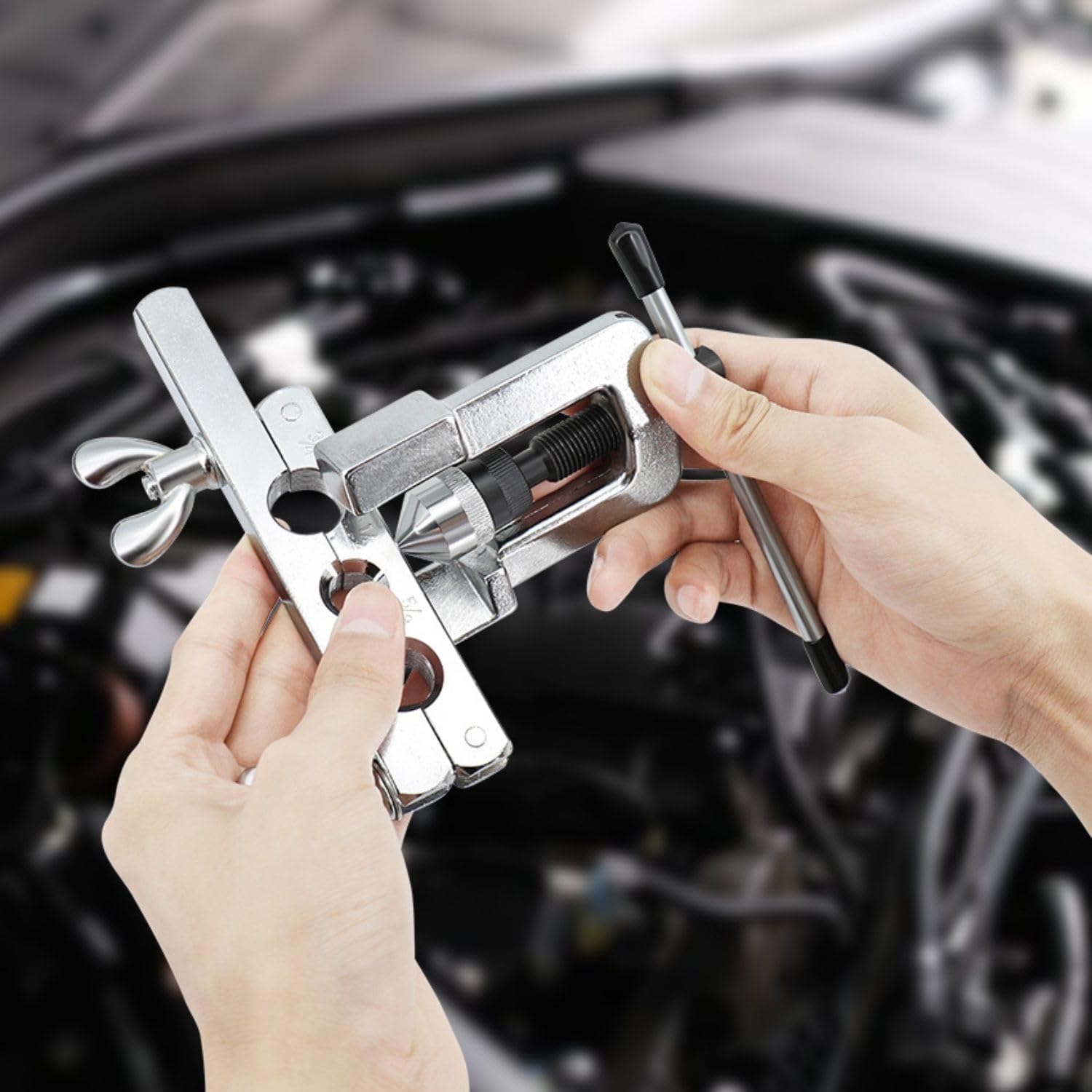 What immediately caught our attention was the completeness of this kit. Unlike bare-bones flaring tools that leave you hunting for adapters, the Flexzion includes both flaring and swaging capabilities in one portable package. The yoke-style design with a rotating turret holds seven different tube sizes simultaneously, which meant fewer tool changes during a multi-size brake line job on a restoration project we were working on.