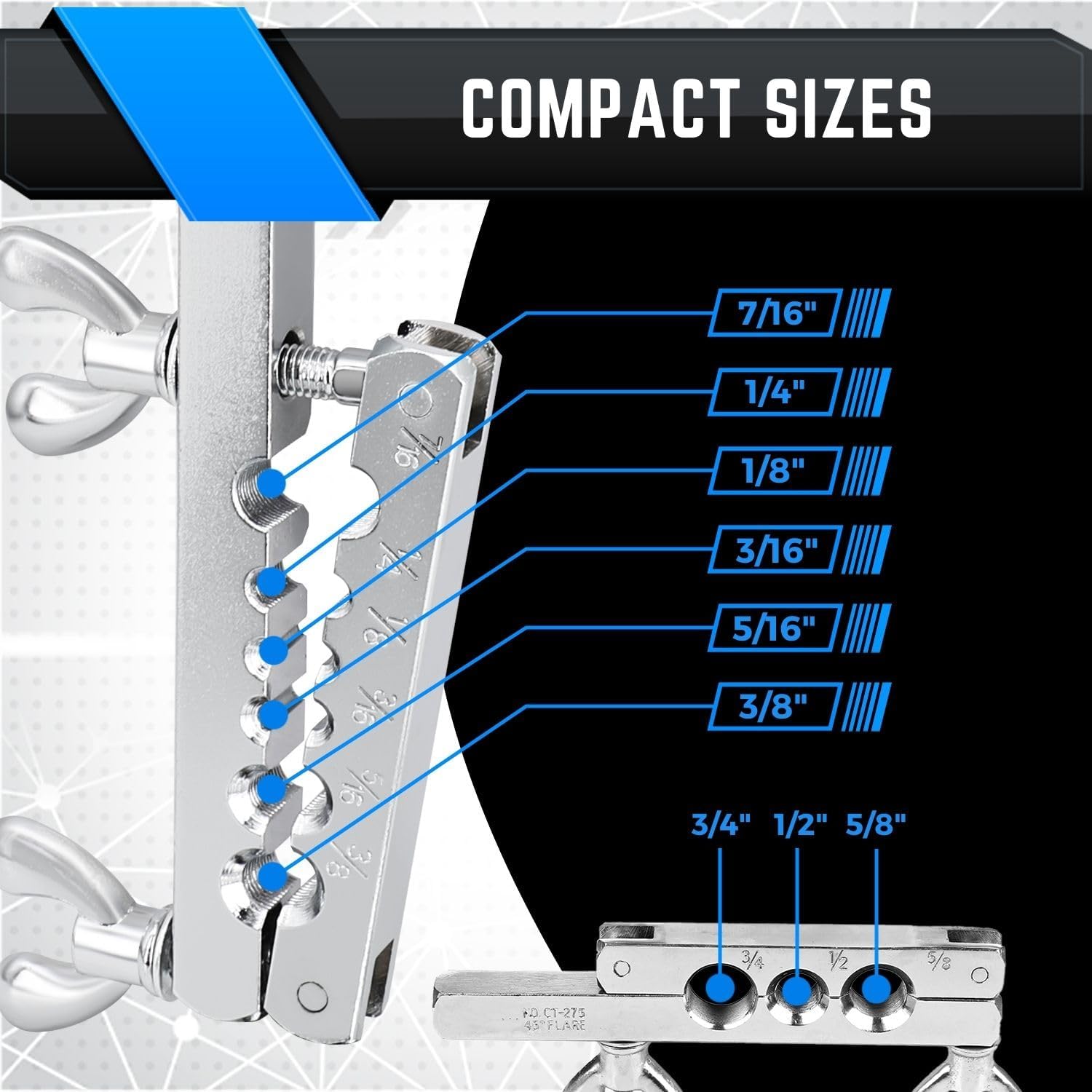 - Tube Size Range: 1/8″, 3/16″, 1/4″, 5/16″, 3/8″, 1/2″, 5/8″, 3/4″ – Covers virtually every soft copper application from brake lines to residential water supply