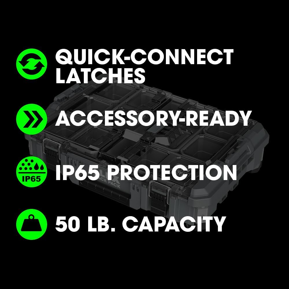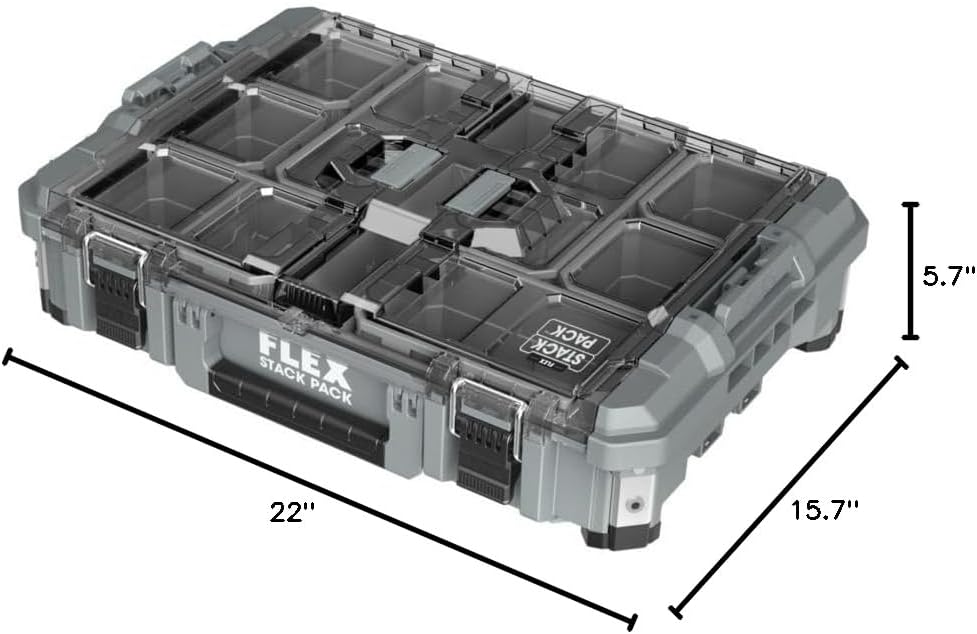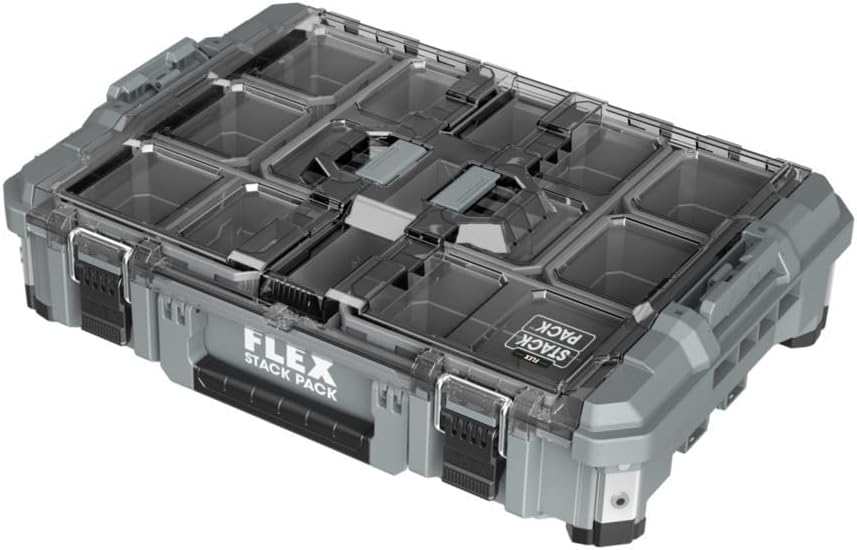 Organize your essentials with the FLEX STACK PACK Storage System. These durable, stackable organizer boxes feature customizable compartments and a secure latch design. Perfect for tools, crafts, or small parts—maximize space while keeping everything visible and accessible.