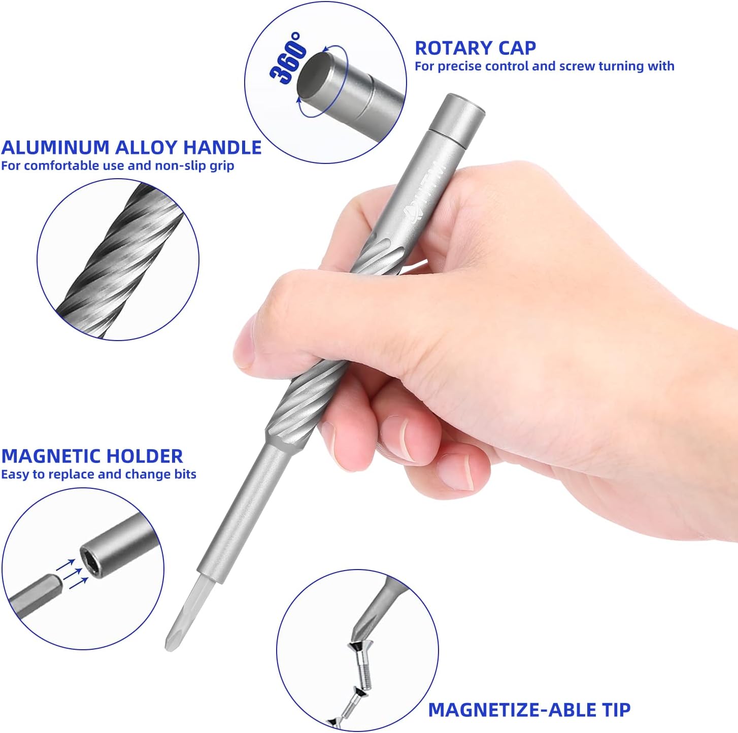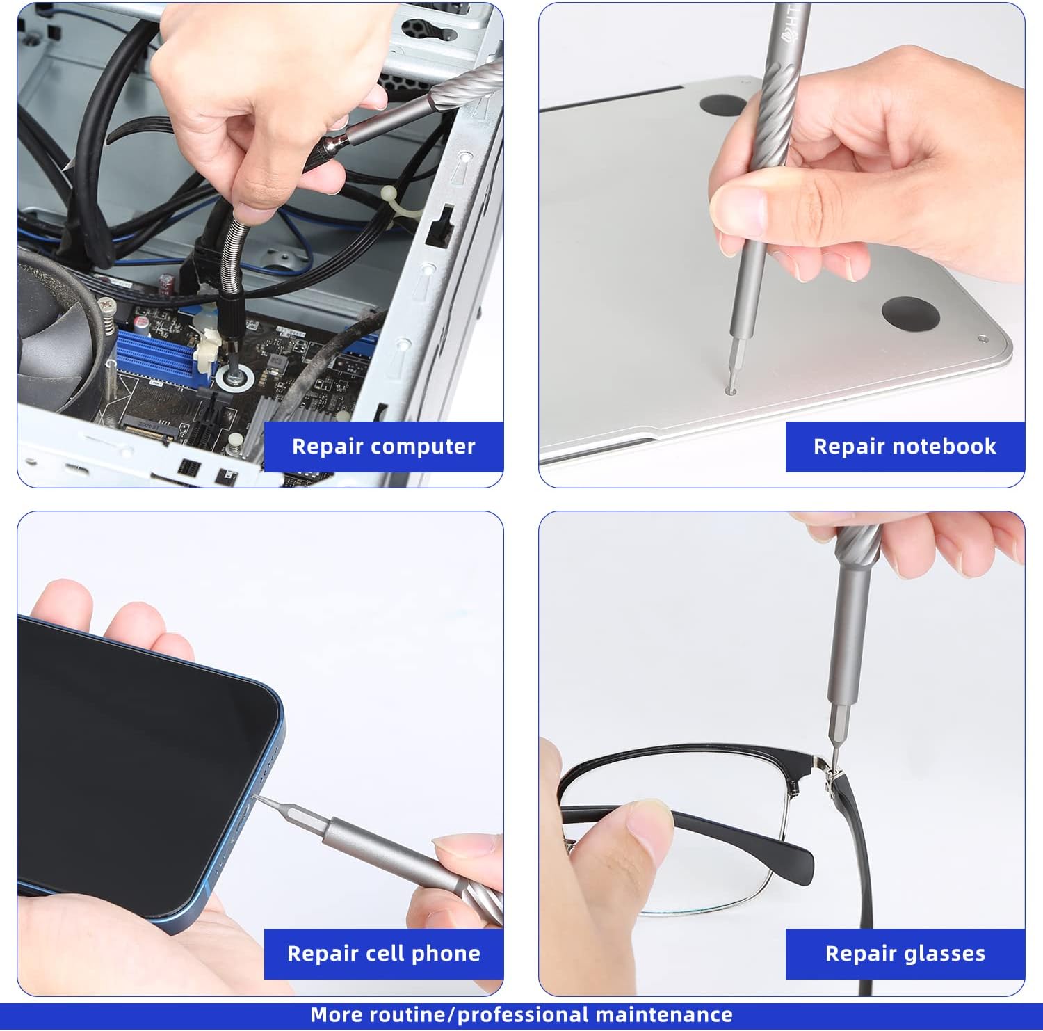**Precision Phillips and Flathead Bits**: These covered every repair scenario we encountered, from tiny watch screws to larger computer case fasteners. The variety of sizes meant we always had the perfect fit.
