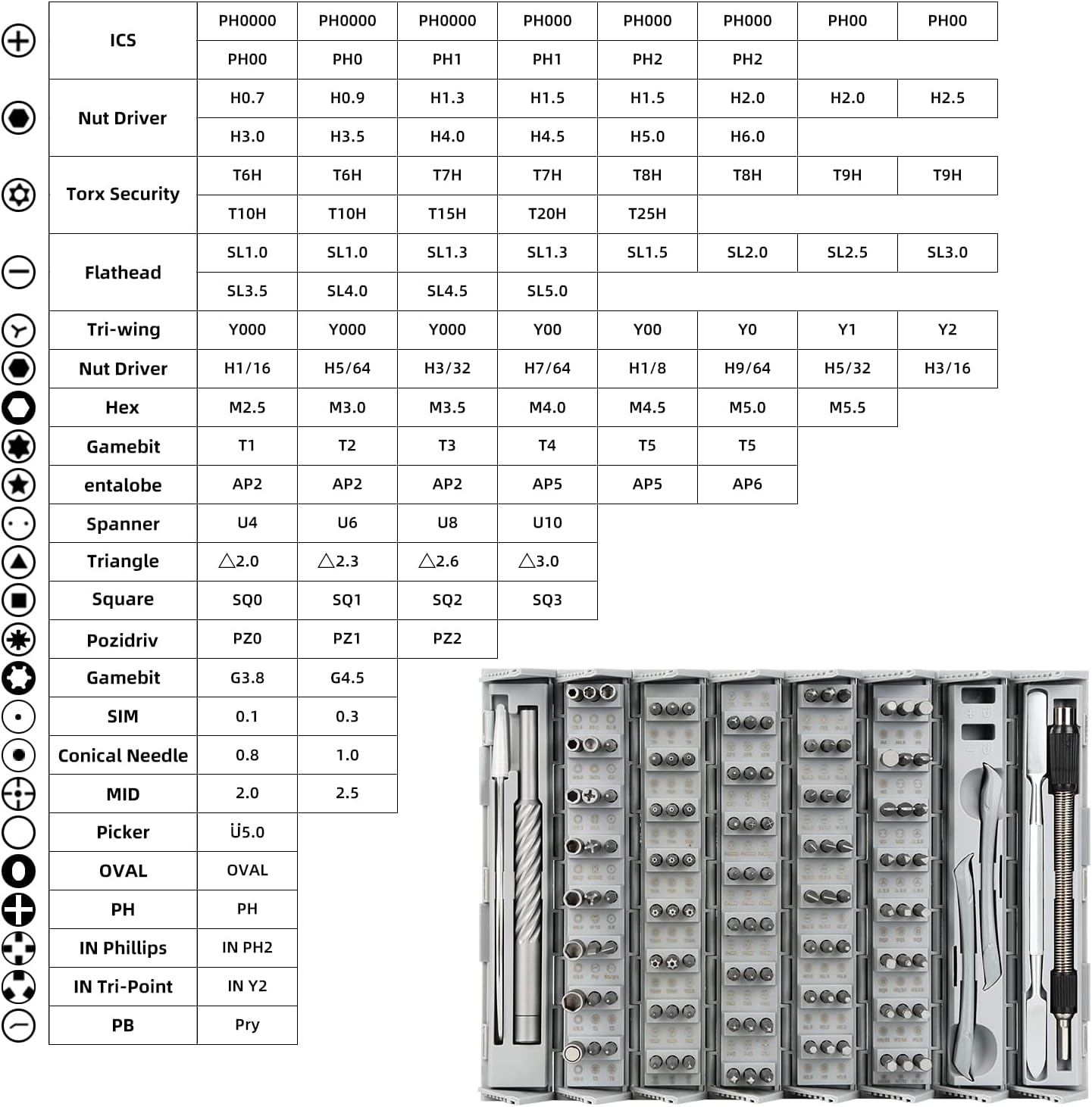 **Specialty Bits**: Including SIM card ejectors, spudgers, and opening tools that we used regularly for smartphone repairs.