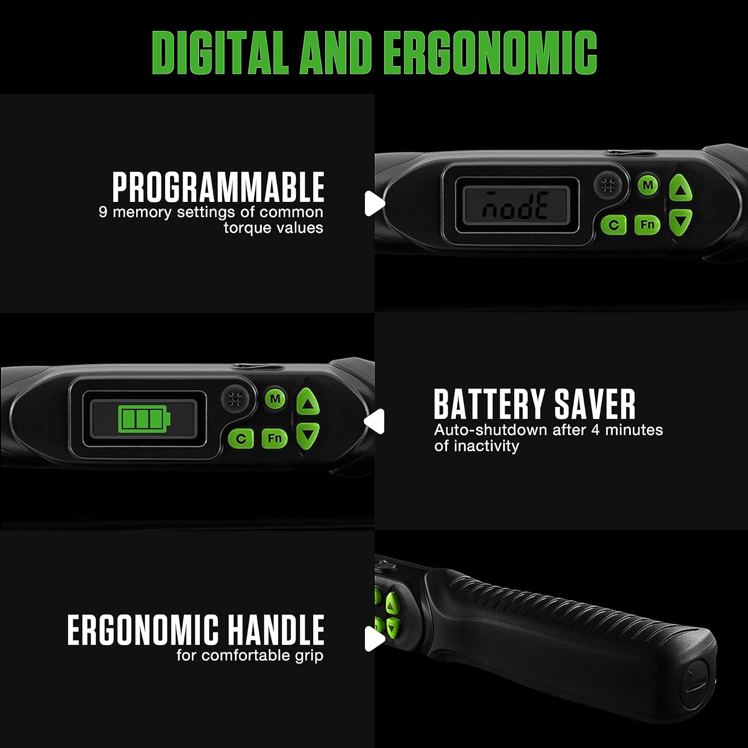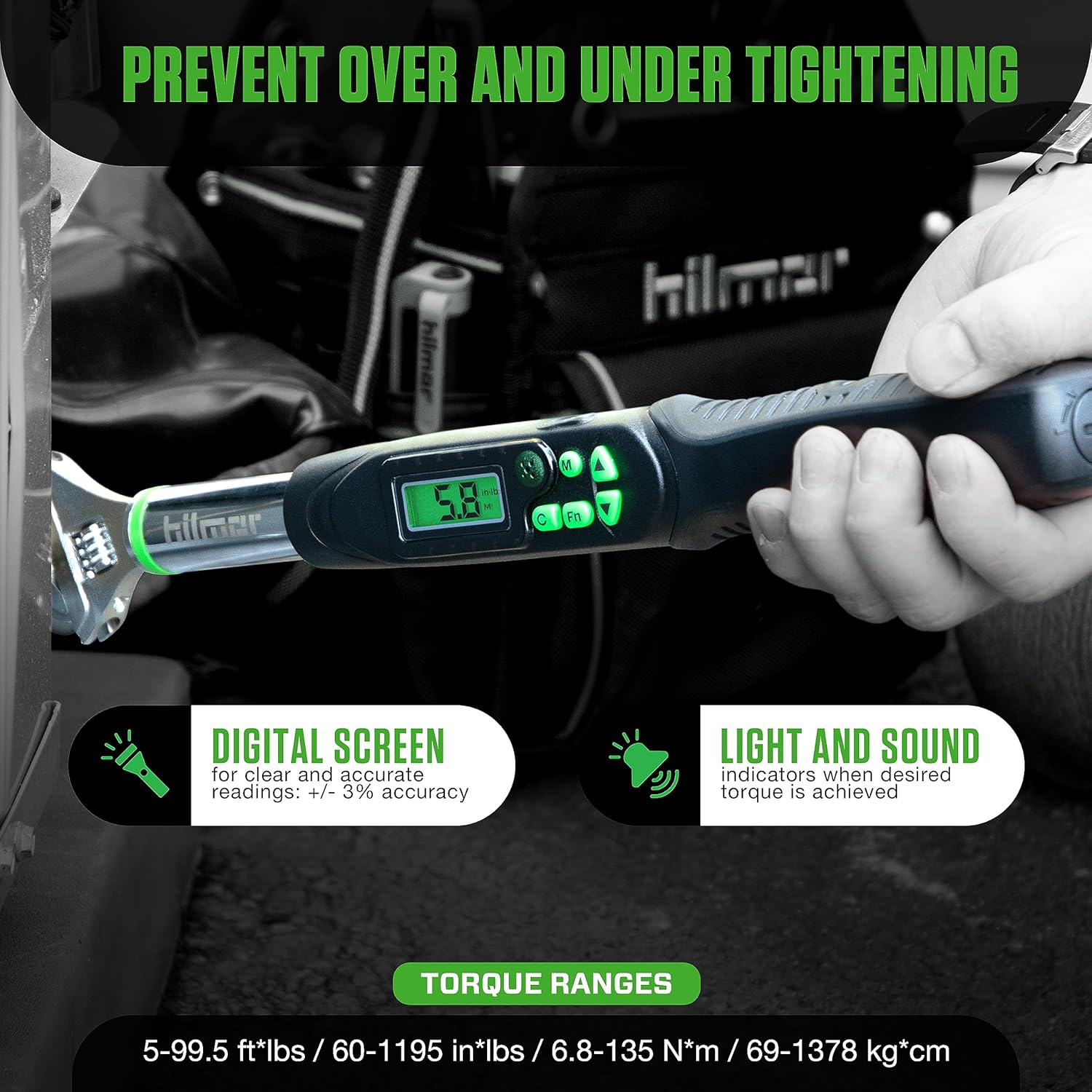 • Precise Digital Readout: Instantly view exact torque measurements