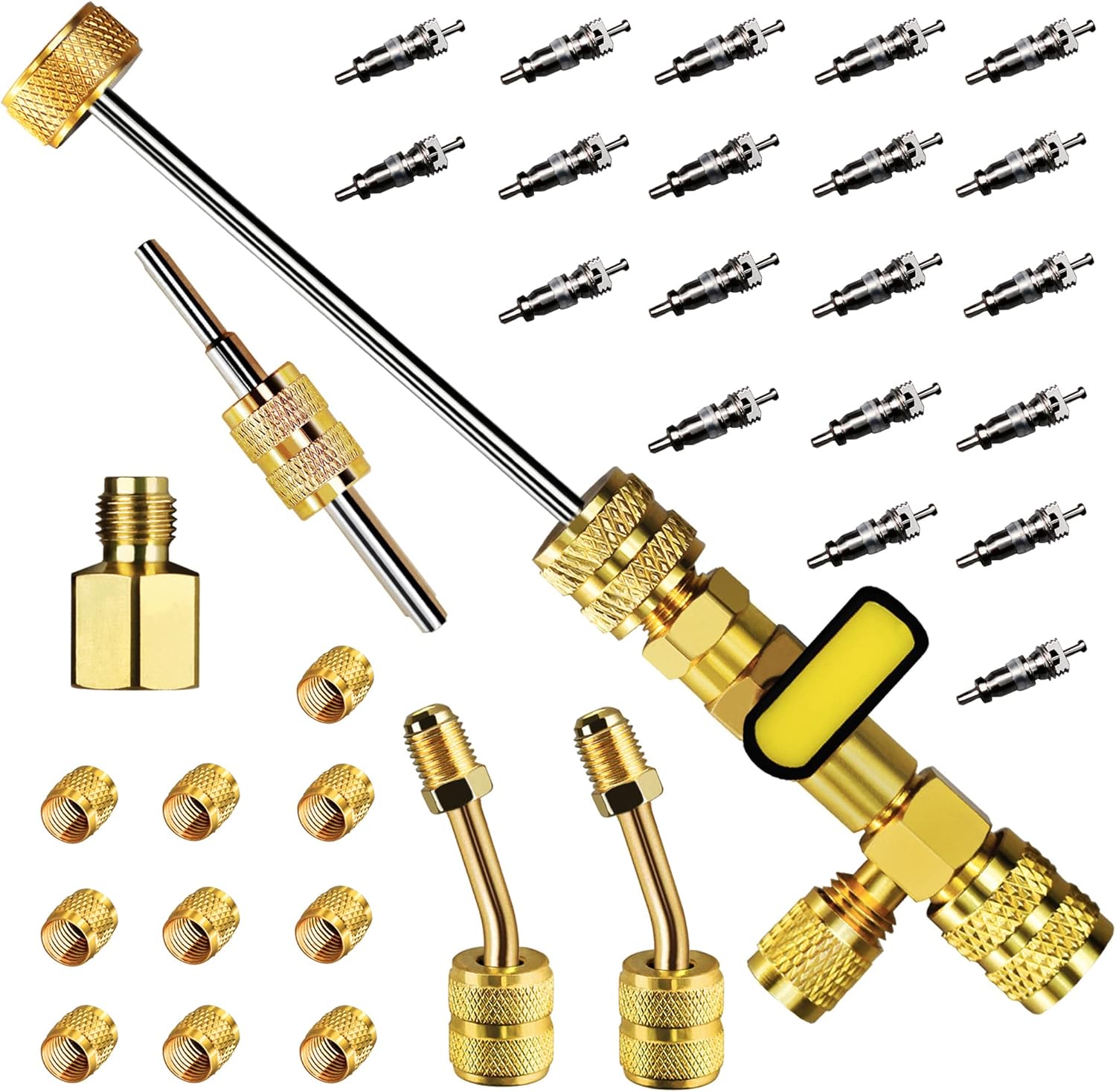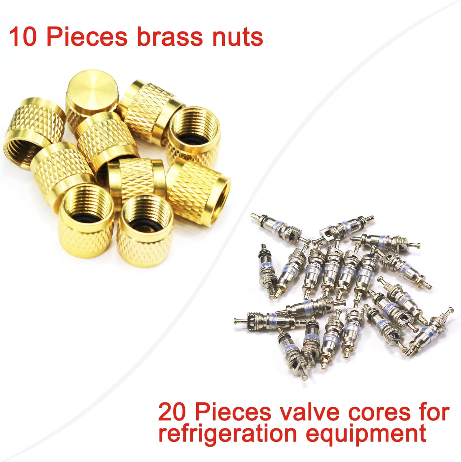 HVAC AC Valve Core Removal Tool R410A 20 Cores 10 Brass Nuts SAE Adapter