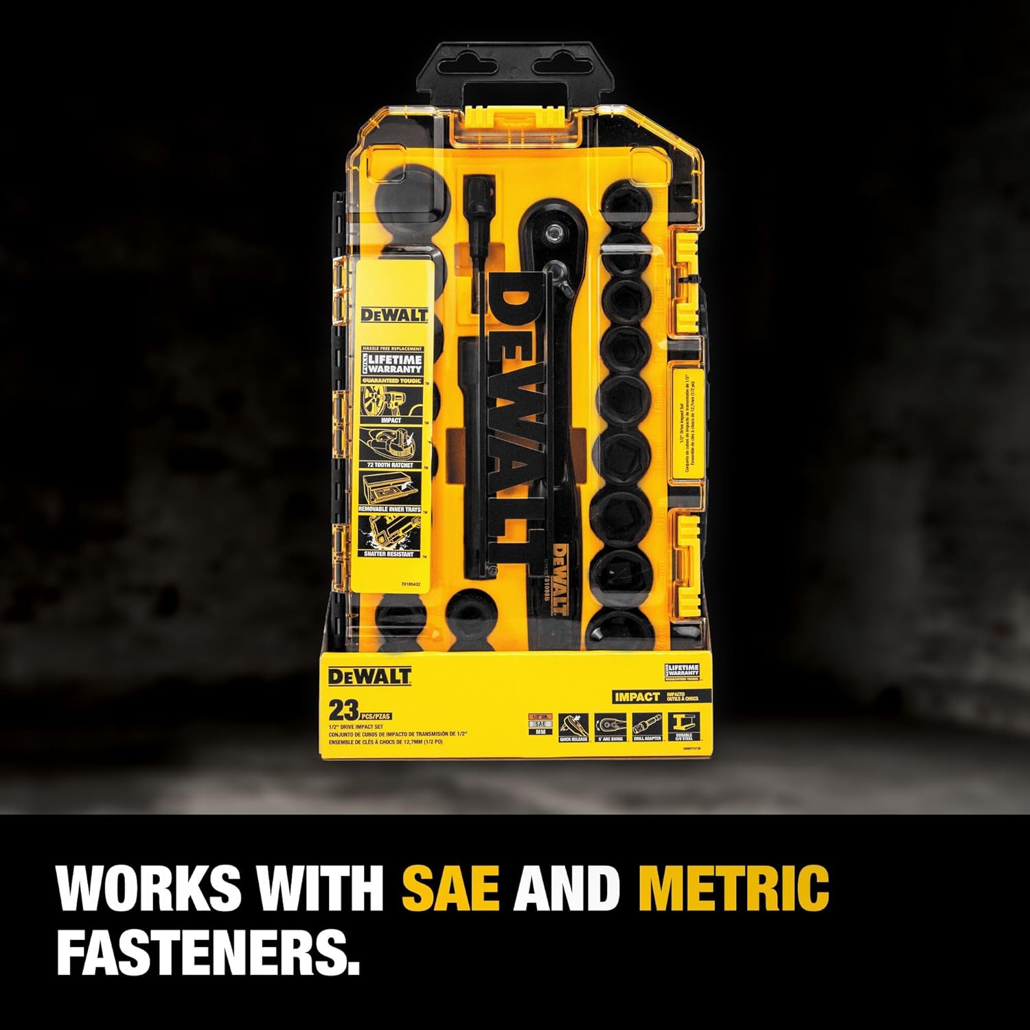DEWALT 23pc Impact Socket Set 1/2 Drive Metric SAE with Case