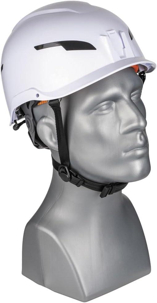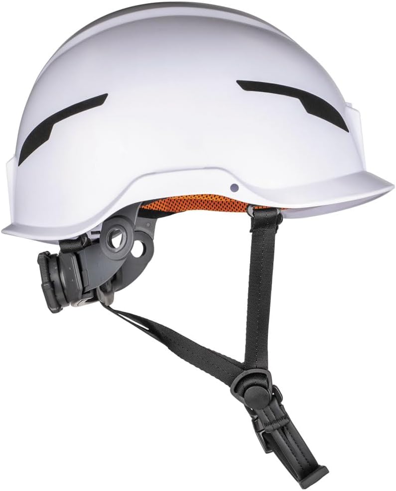 We recommend inspecting the helmet regularly for any signs of damage, especially after any impact. The white color actually makes inspection easier, as cracks, dents, or stress marks are more visible than on darker-colored helmets. Klein Tools recommends replacement every five years or immediately after any significant impact, which aligns with industry best practices.