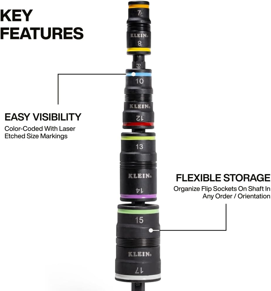 Tackle tough jobs with Klein Tools’ versatile 8-in-1 impact driver socket set. Featuring 4 flip sockets and metric sizes 7-17mm, this 6-1/2″ impact-rated tool delivers professional-grade performance for precision and durability.