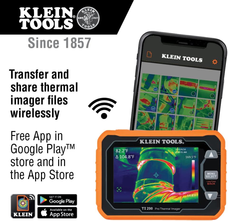 Klein Tools TI290: Professional-grade thermal imaging with 49,000+ pixels, Wi-Fi transfer, 3 color palettes, and automatic hot/cold spot detection. Rechargeable and ready for demanding applications.