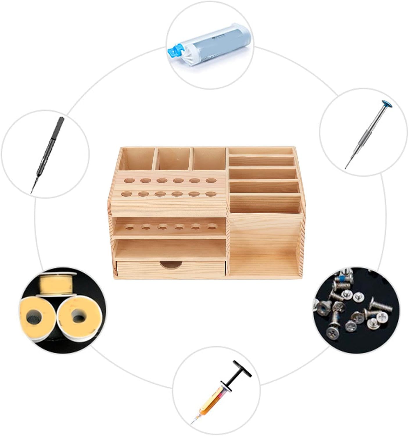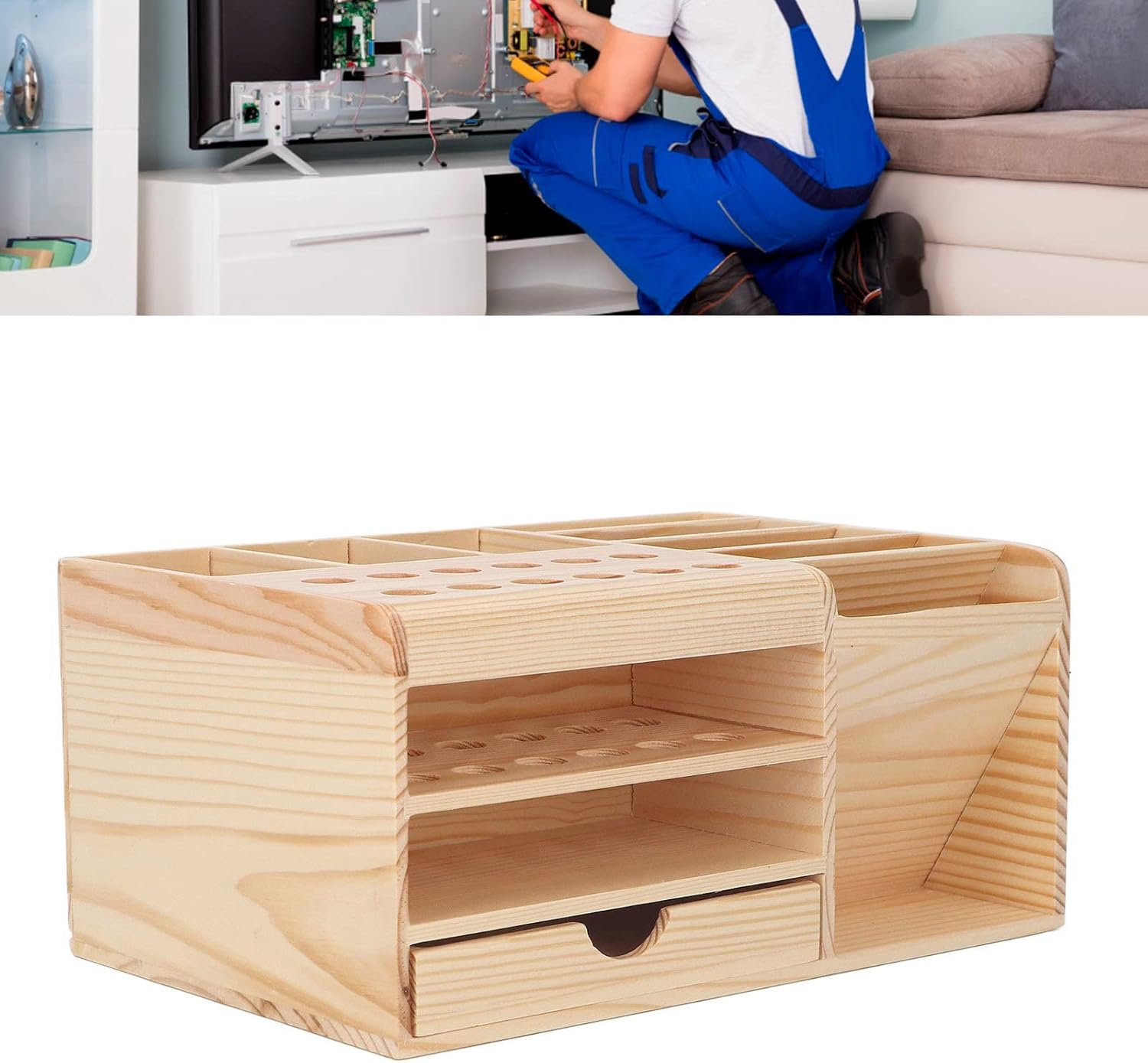 During our thorough testing, we were immediately impressed by the tool holder’s robust construction. The solid wooden base provides stability that prevents tools from sliding or falling, while the carefully measured holes accommodate a wide range of tool sizes.