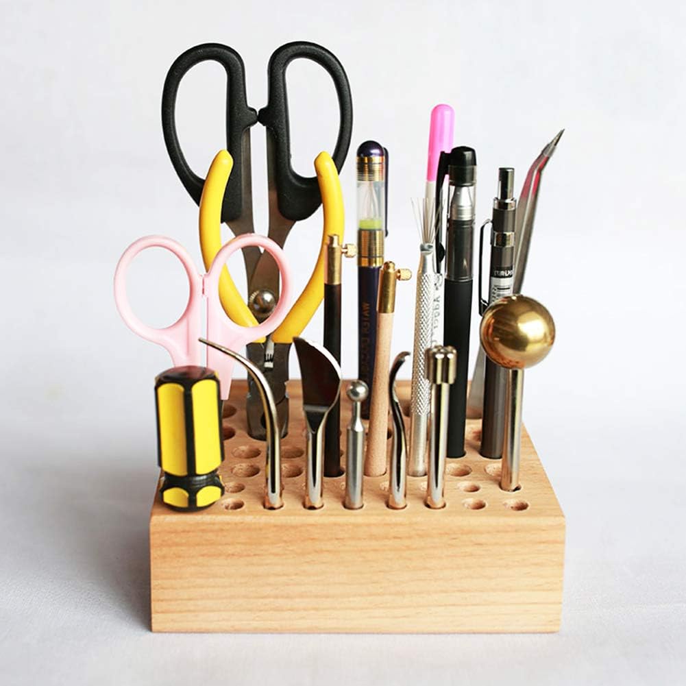 Elevate your leathercraft with this professional 46-slot tool rack. Durable wooden design keeps tools organized, accessible, and protected. Perfect for artisans and crafting enthusiasts seeking efficient workspace solutions.