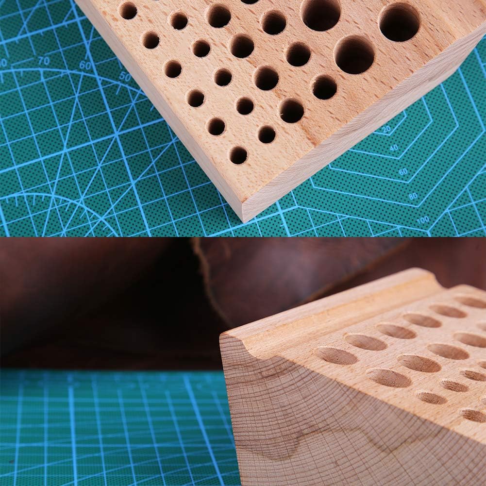 This isn’t just another storage rack – it’s a carefully engineered solution designed by craftspeople, for craftspeople. With capacity for 46 distinct tools, this wooden holder ensures every punch, awl, and specialized leather working implement has its perfect home.