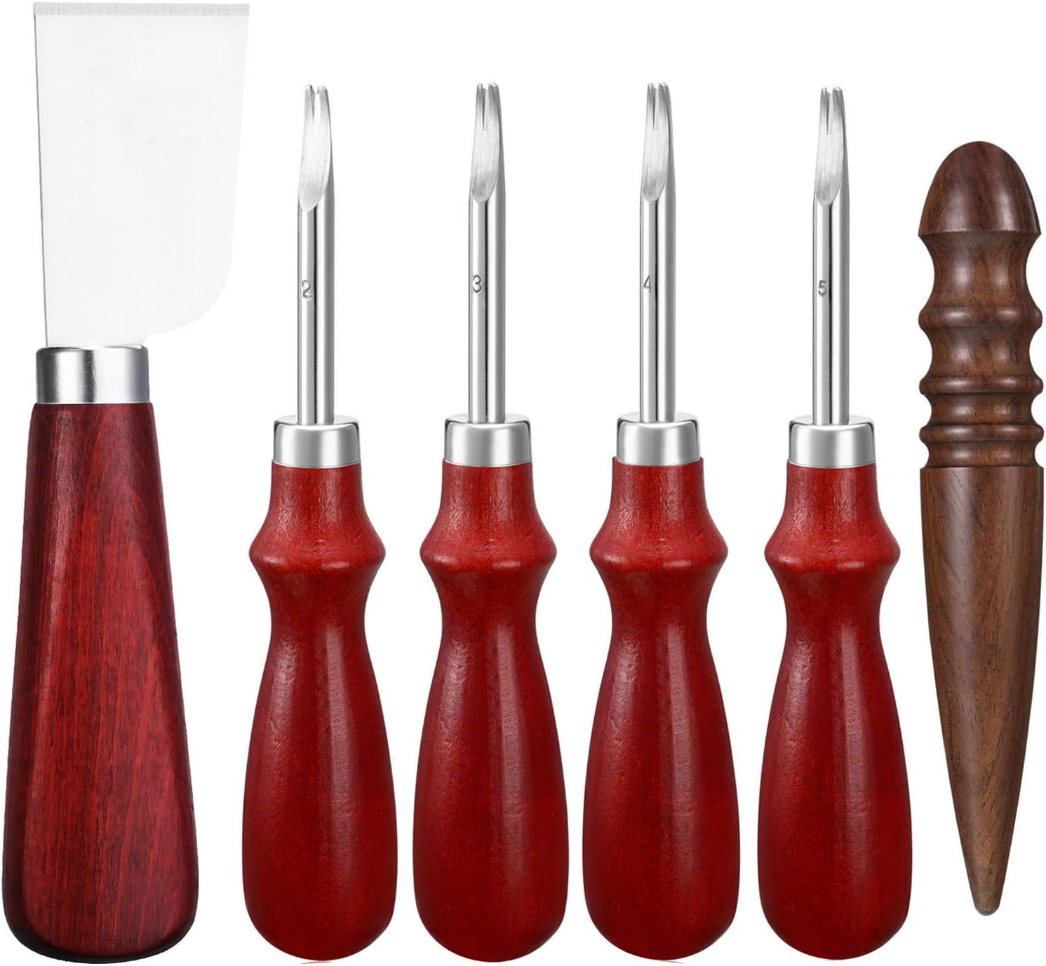 Elevate your leather crafting with this precision 6-piece toolkit. Professional-grade edge bevelers, sharp cutting & skiving knives, and a smooth sandalwood burnisher for flawless, professional-quality leather projects.