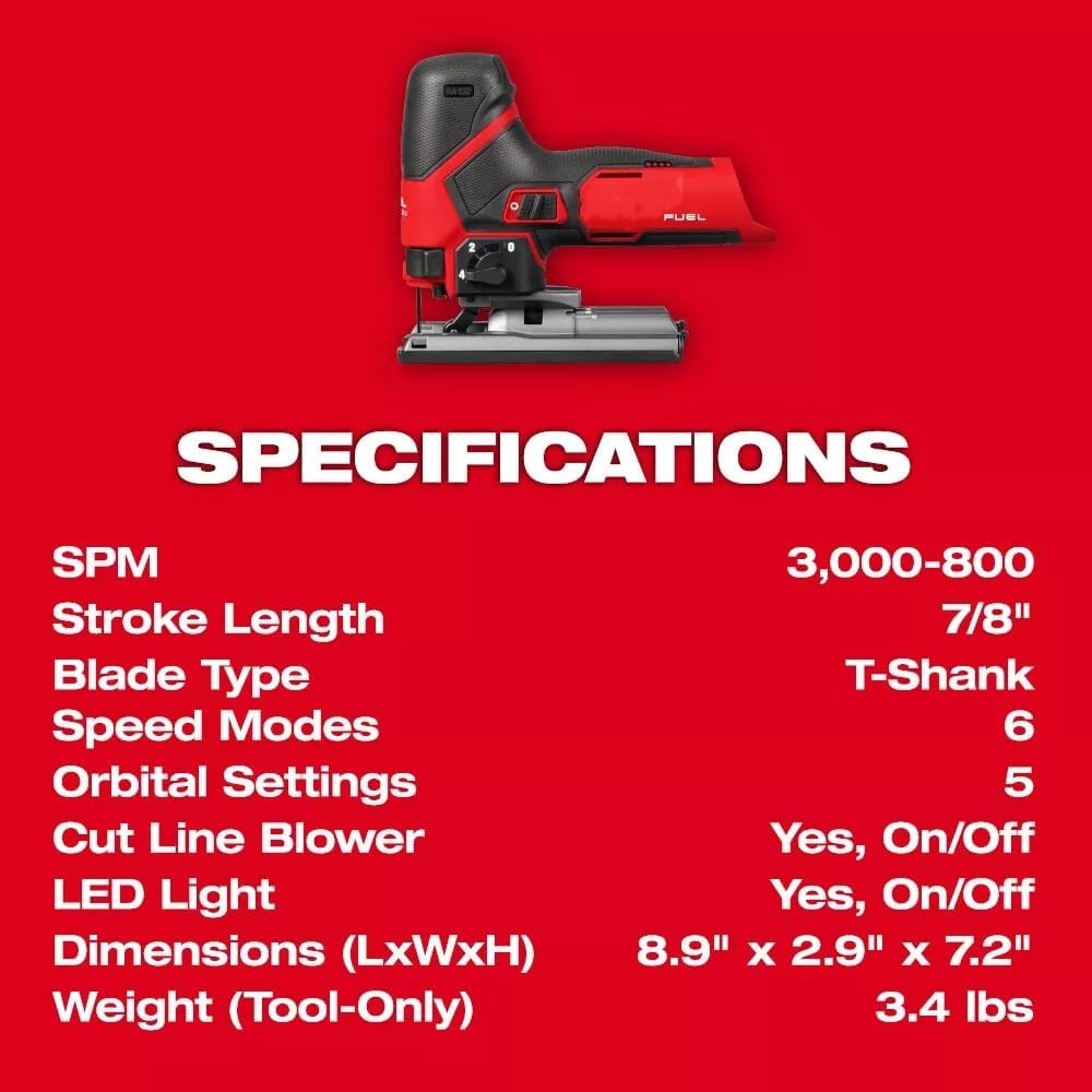 The 8.9″L x 2.9″W x 7.2″H dimensions create a tool that feels balanced in hand—not too heavy at the nose, which we found critical during vertical cuts on cabinet installations. We’ve used plenty of compact jigsaws that sacrifice power for size, but Milwaukee engineered this tool to deliver both.