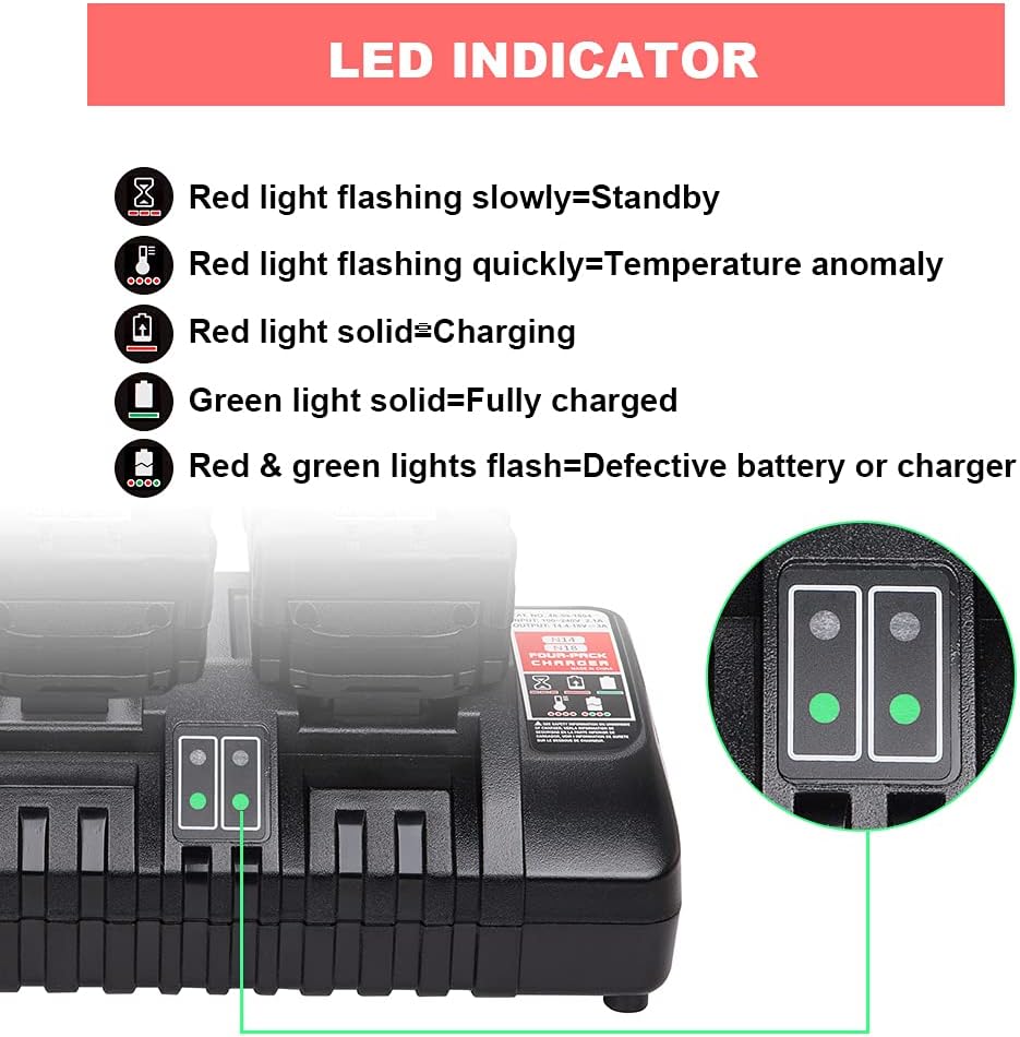 The build quality exceeded our expectations for a third-party accessory. The housing is solid ABS plastic with excellent heat dissipation vents on three sides. After charging batteries continuously for 8+ hour days, we noticed the unit stayed remarkably cool—much cooler than Milwaukee’s official multi-bay charger we tested side-by-side. The LED indicator system is simple but effective, with clear red (charging) and green (complete) lights for each bay.