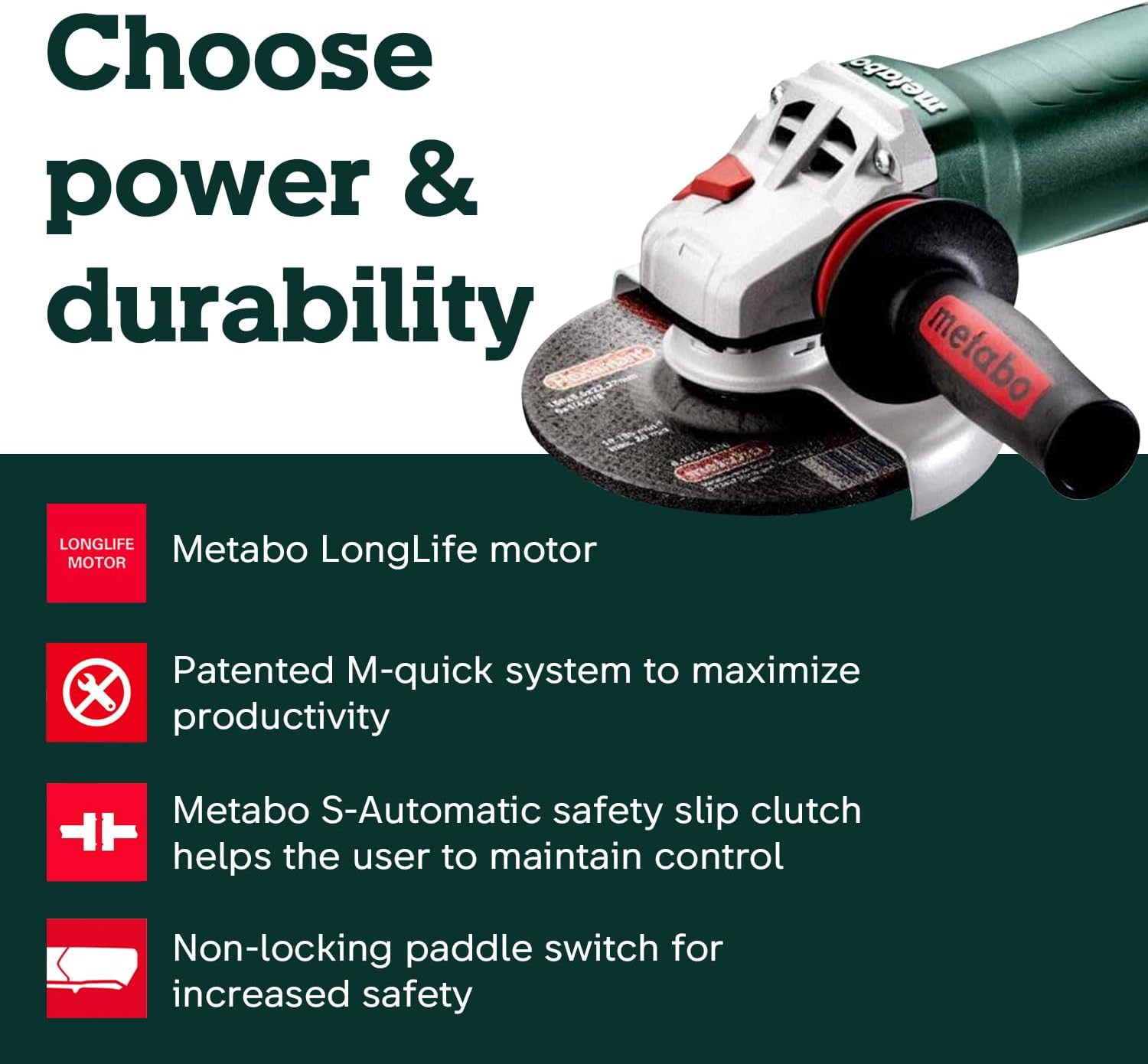 – Distinctive green Metabo professional color