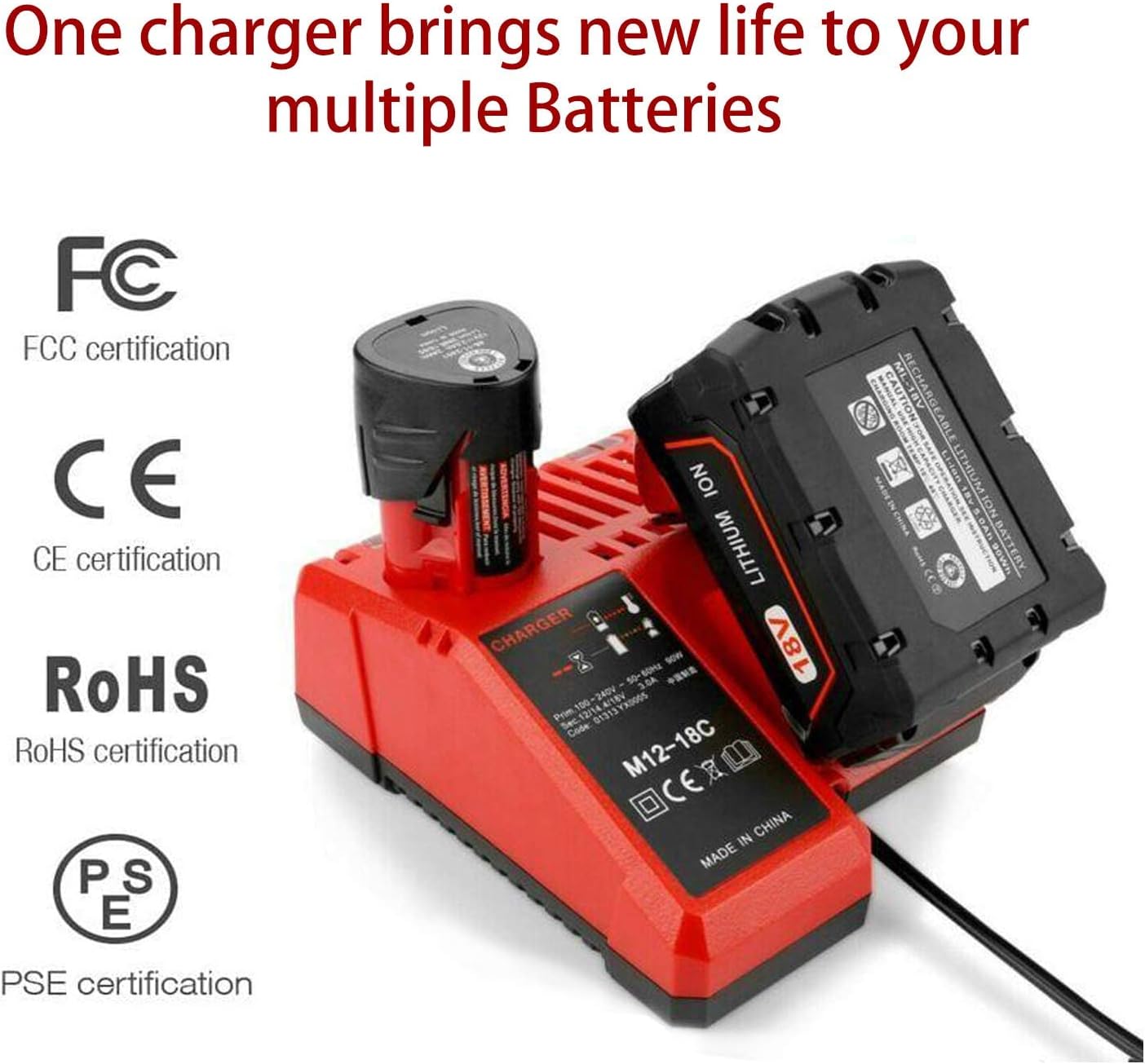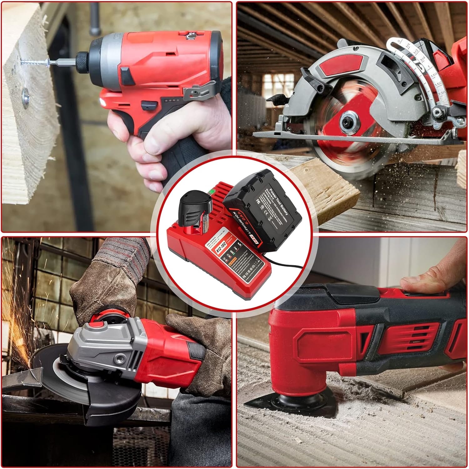 – Multi-Voltage Charging: Seamlessly charges both 12V and 18V batteries