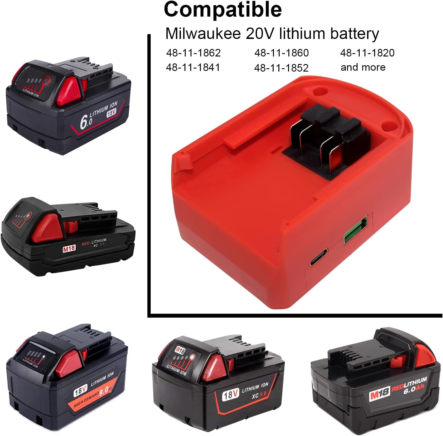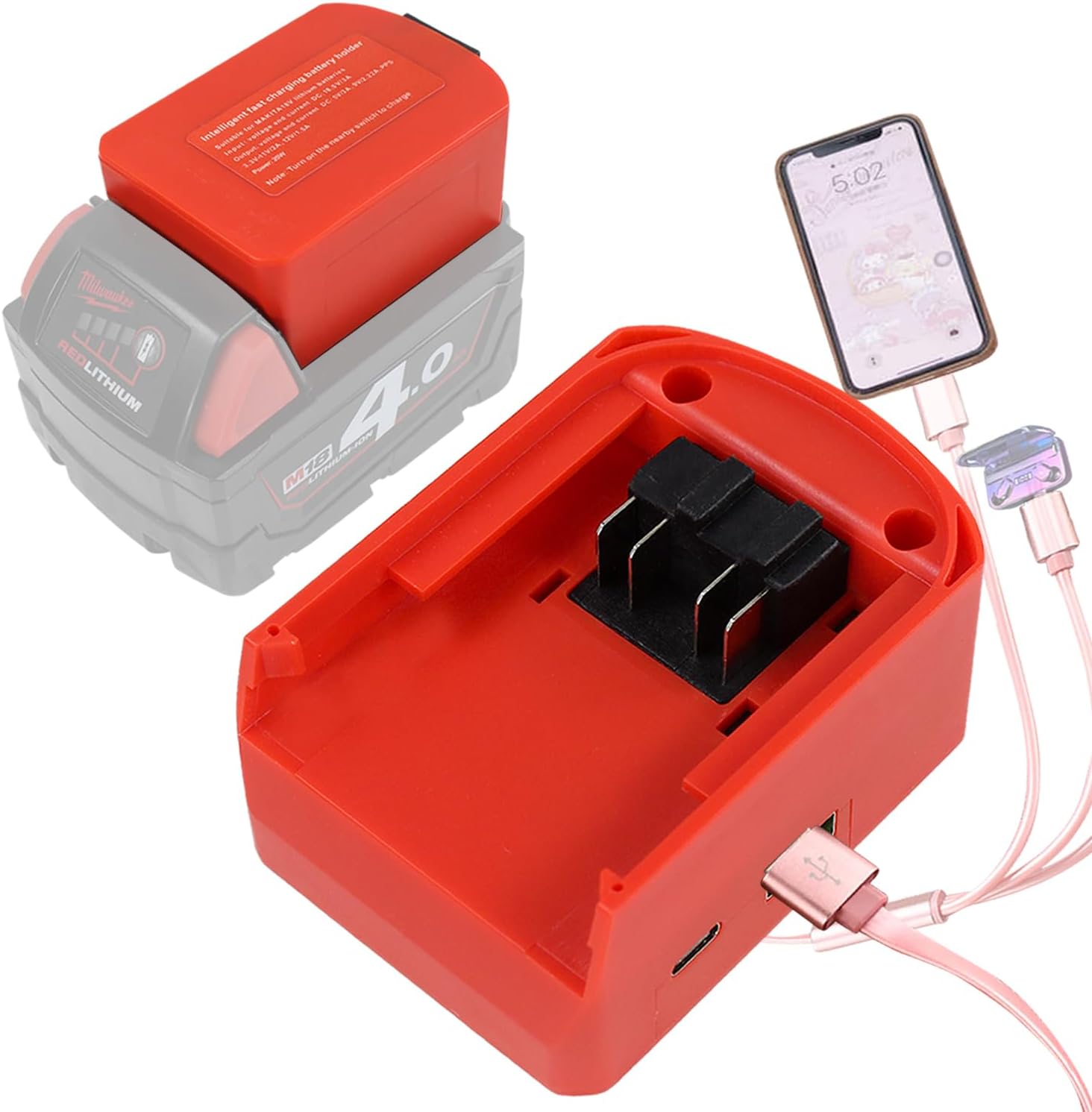 Milwaukee 18V Battery to USB Charger Adapter, Fast Charge Power Tool Converter