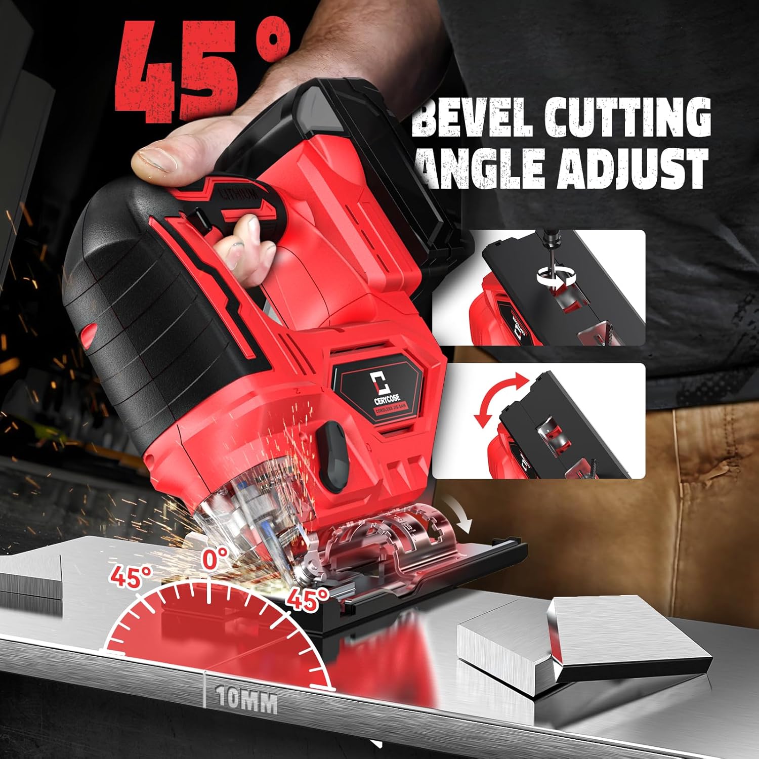 The bevel capacity from 0° to 45° locks firmly at common angles (15°, 30°, 45°) with positive detents you can feel and hear. We’ve used jigsaws where the bevel adjustment is either too loose or requires a wrench and three hands to adjust. This one hits the sweet spot—tool-free adjustment that’s quick but doesn’t shift during cutting. The LED light might seem like a minor addition, but when you’re cutting in a cabinet interior or under a deck, having shadow-free illumination right at the blade makes a bigger difference than you’d expect.