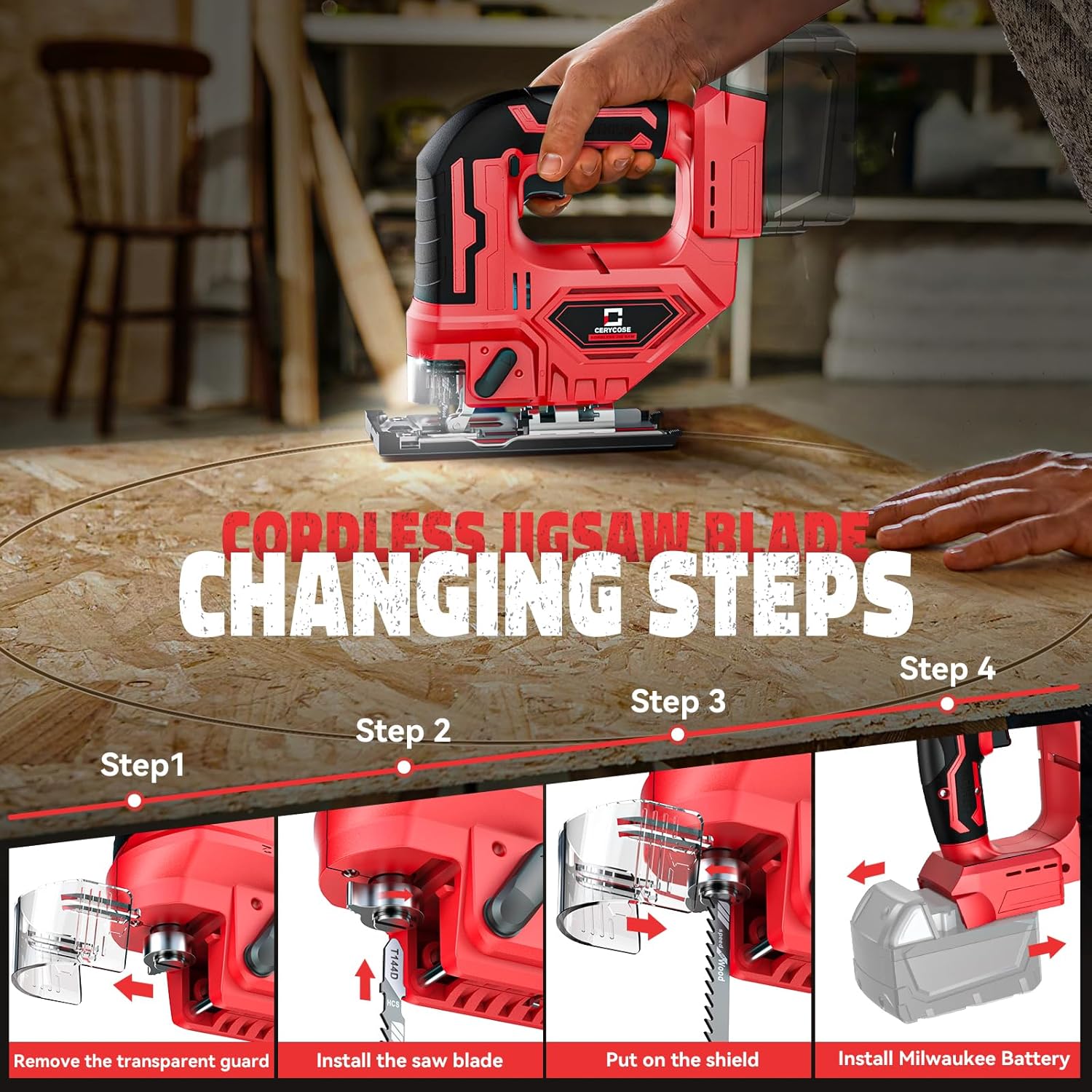 - Tool-Free Blade Changes: Lever-action blade clamp accepts T-shank blades (industry standard) and releases without requiring hex keys or special tools. Hot blade changes after extended cutting are safer and faster.