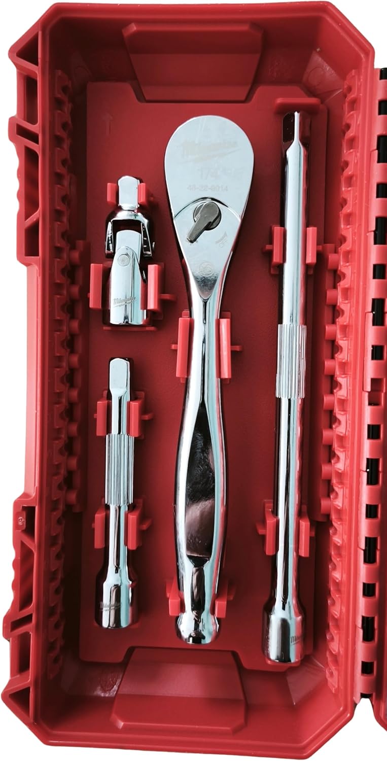 Milwaukee has built a reputation for producing professional-grade tools, and this 38-piece set maintains that standard. What immediately impressed us was the compact organization and thoughtful selection of pieces. Unlike bloated tool sets filled with redundant sizes, Milwaukee focused on the most commonly needed 1/4-inch drive components that actual tradespeople reach for daily.