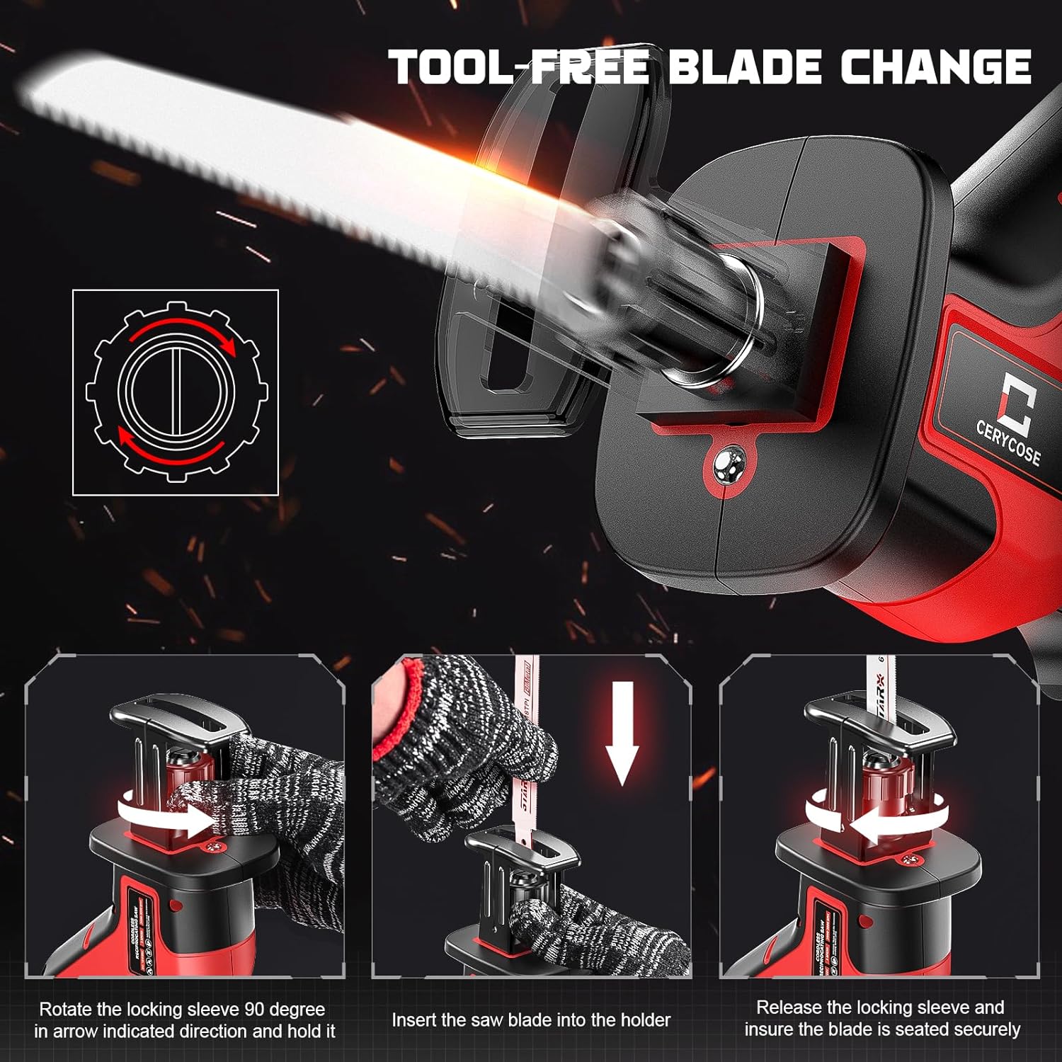 Milwaukee Compatible Cordless Brushless Reciprocating Saw with 4 Blades