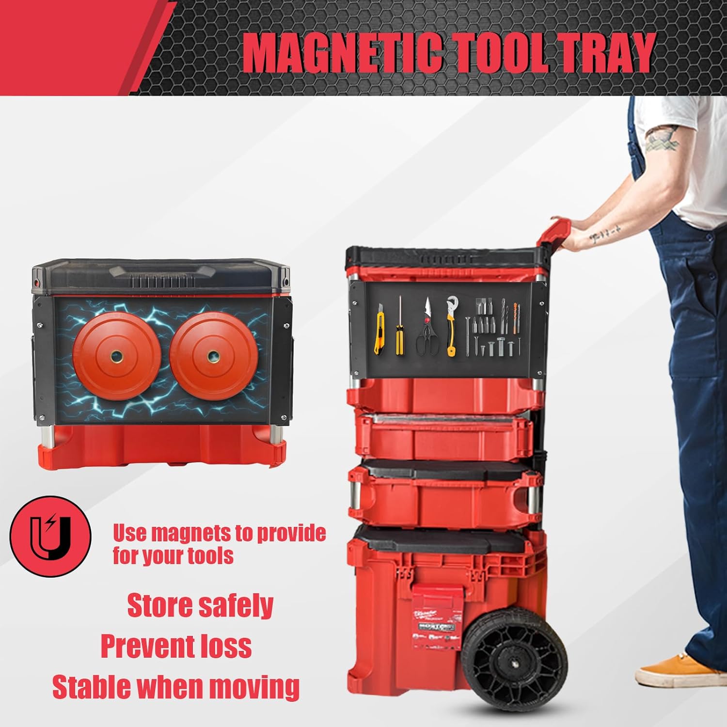 This isn’t just another accessory – it’s a precision-engineered solution that transforms your Milwaukee Packout system into a mobile workstation. The powerful magnetic surface allows you to securely place tools, fasteners, and small components without worrying about them sliding off or getting lost.