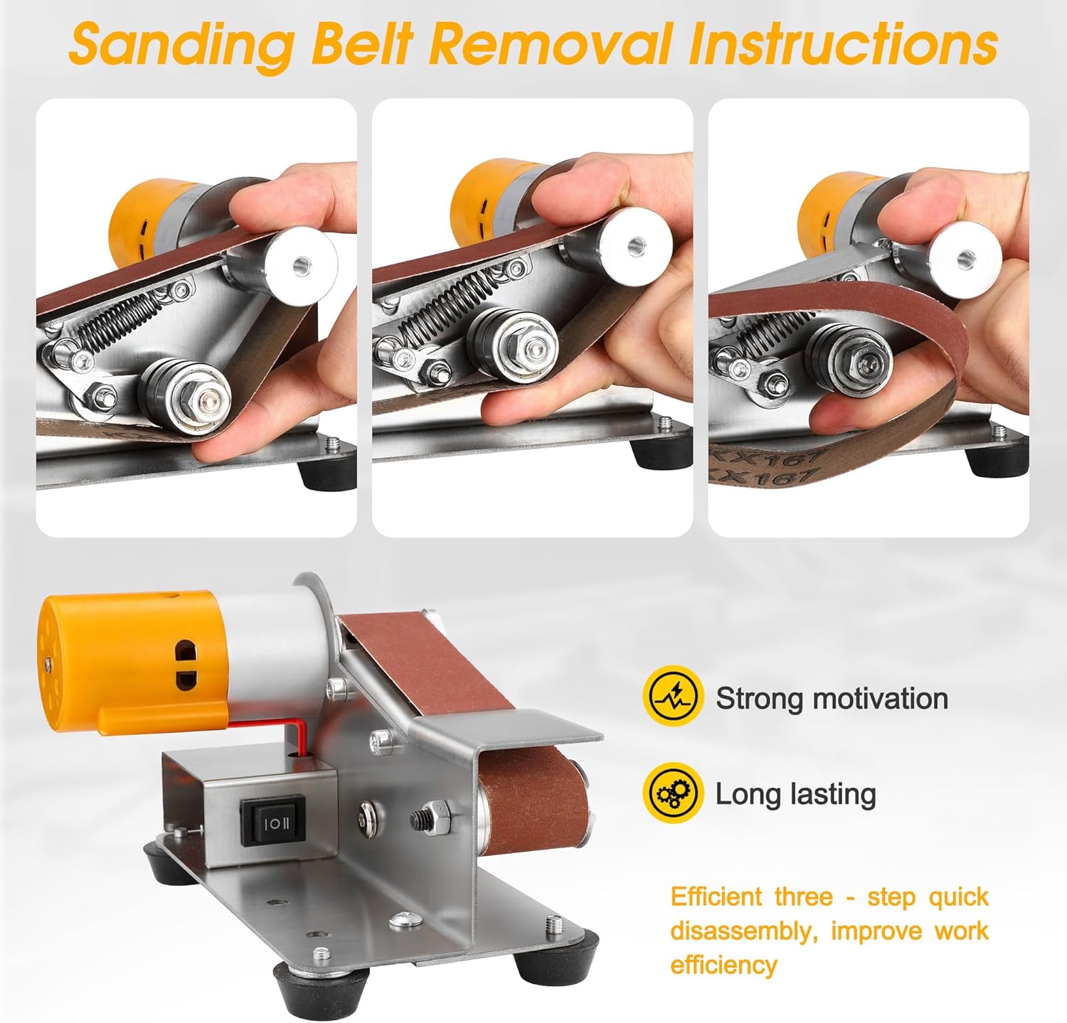 Belt changes were straightforward but not tool-free. The tension release requires a small wrench (included), which adds a few seconds to the process. Not a dealbreaker, but worth noting if you switch grits frequently during a project.