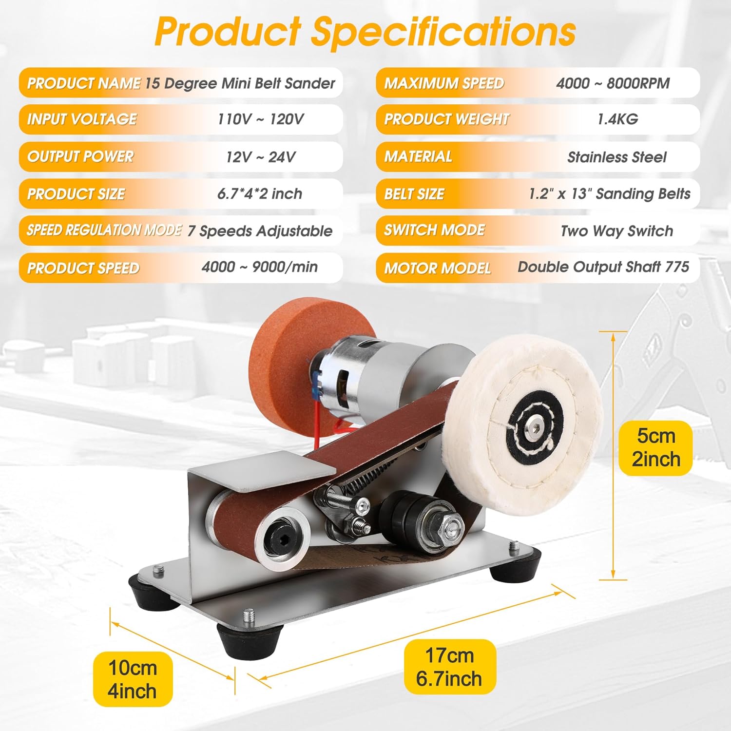 Mini Belt Sander for Knife Making with 7 Speed Settings 15 Degree