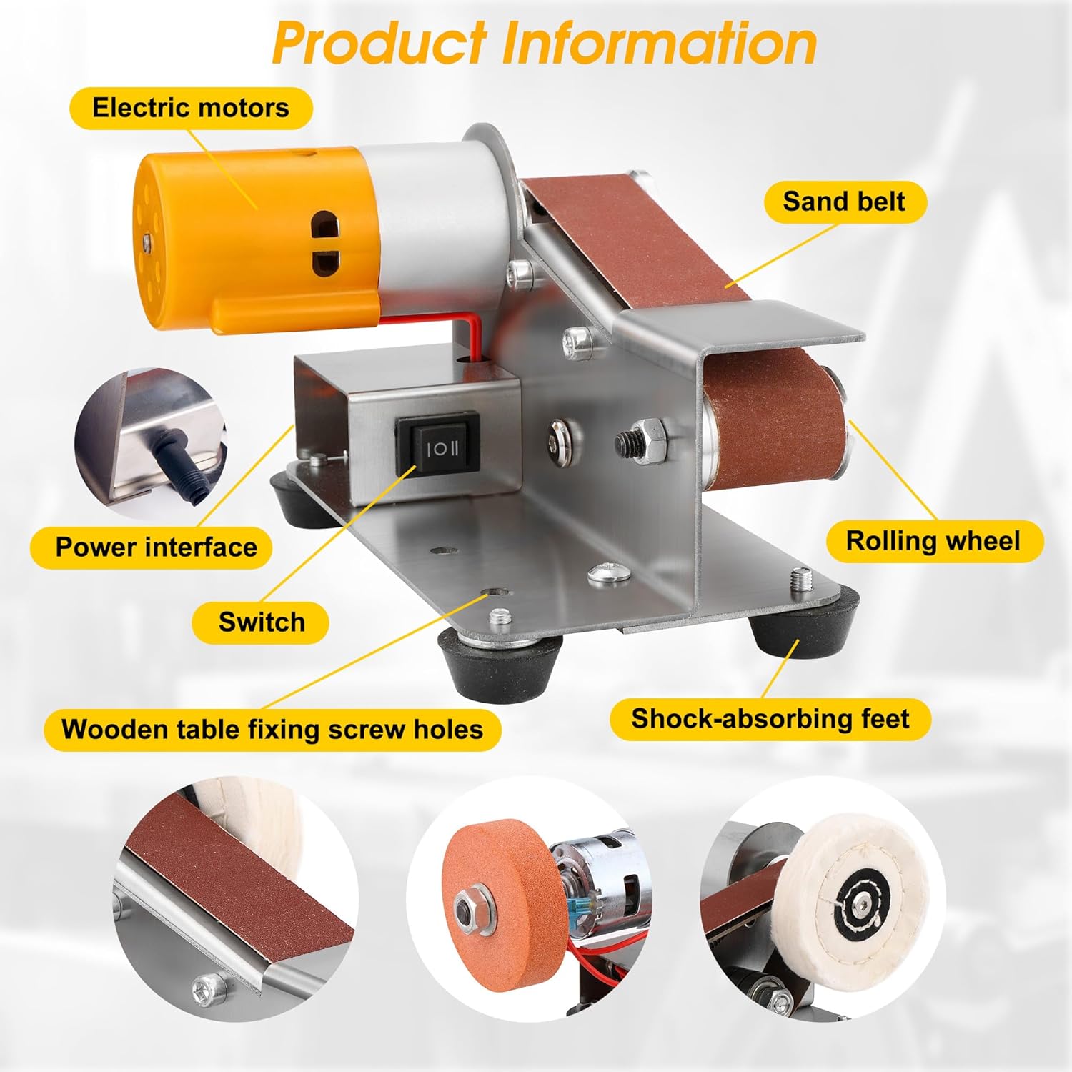 - 7-speed variable control: Adjusts belt speed for different materials and operations. Lower speeds (1-3) prevent overheating during fine polishing; higher speeds (5-7) maximize material removal efficiency.
