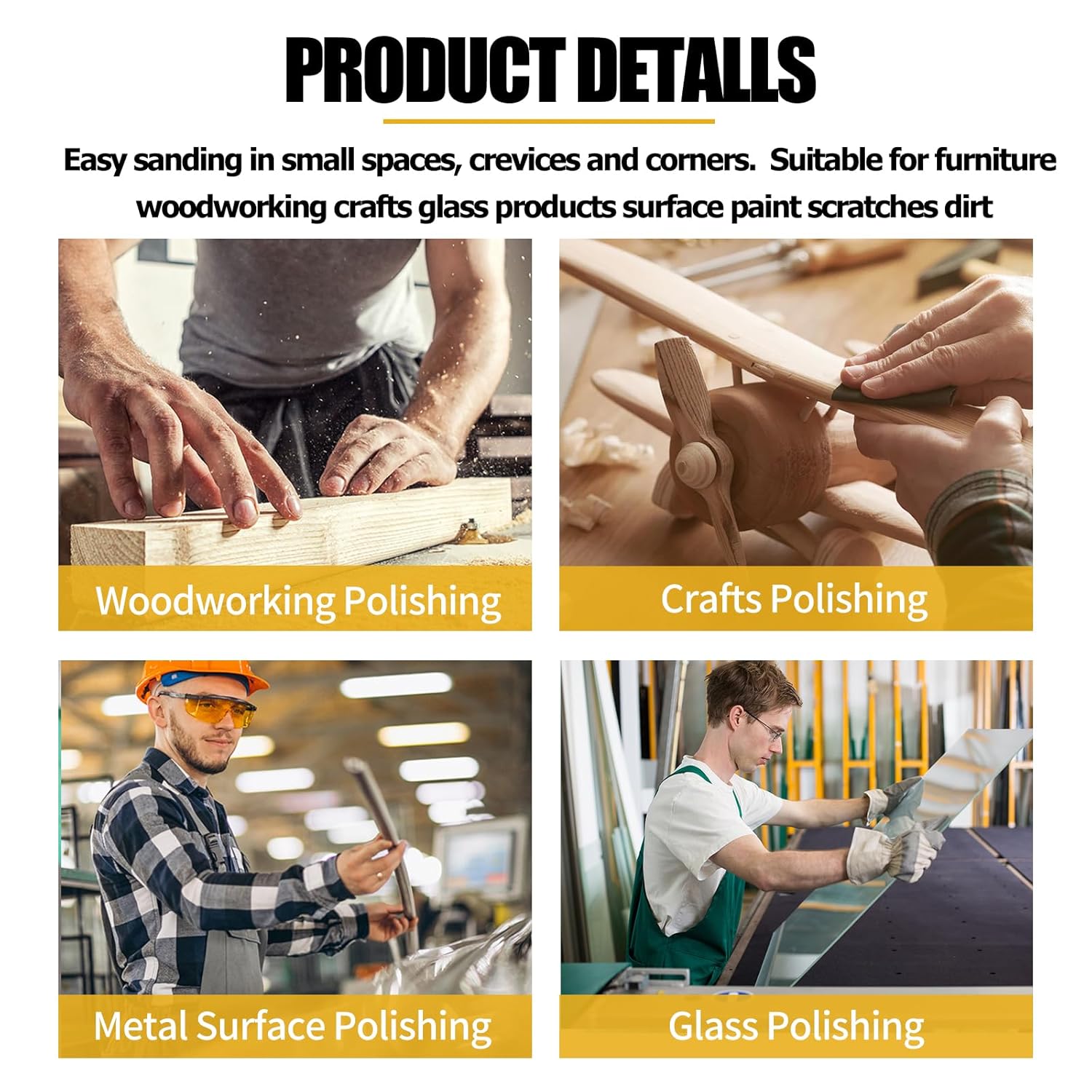 Perfect for tight spaces, this 2-pack mini finger sander kit includes 30 sheets of multi-grit sandpaper (80-600). Ideal for wood finishing, DIY projects, and precision work in narrow areas. Comfortable grip for detailed crafting without hand fatigue.