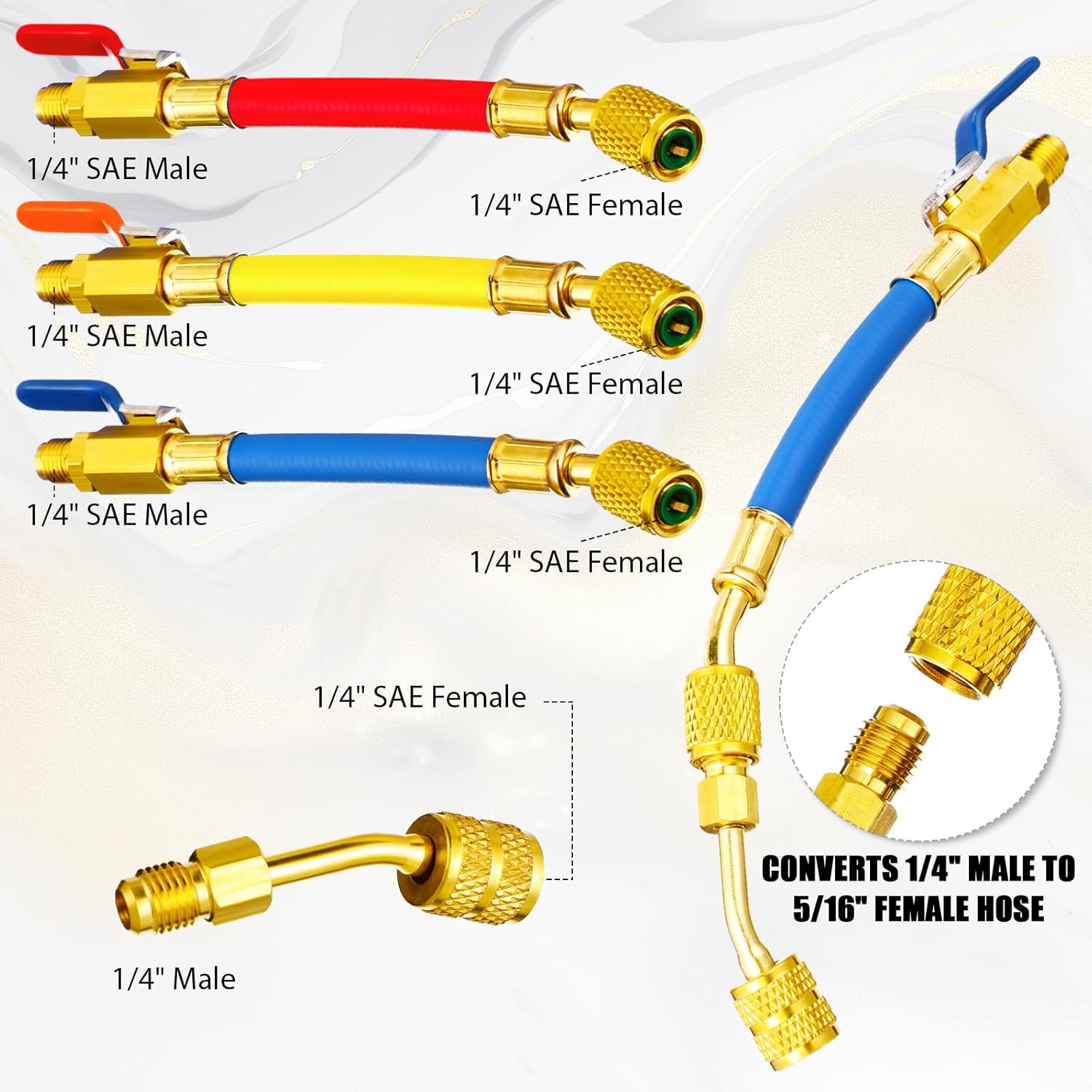 **Gauge Set Connections**: We used these adapters to create custom gauge manifold setups, appreciating the flexibility to configure connections exactly as needed.