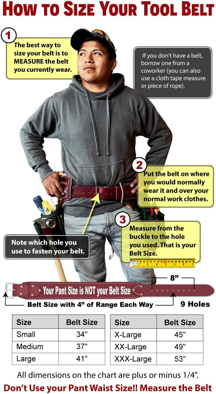 The medium size we tested (designed for 34″-38″ waists) provided a perfect fit that remained comfortable throughout 10+ hour workdays. The 3″ wide padded belt creates a stable platform that prevents the loaded pouches from sagging or shifting, even when fully loaded with framing hardware.
