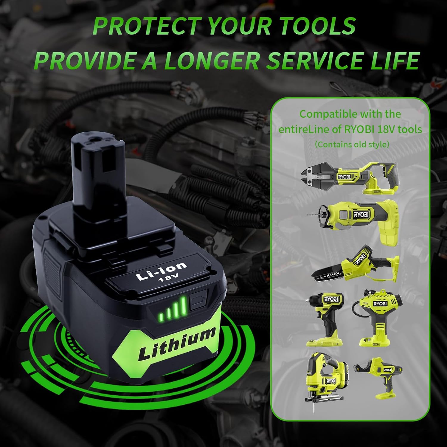 The upgraded 6000mAh High Capacity Replacement for Ryobi 18V ONE + Battery P108 promises extended run-time and optimized power for your Ryobi tools. Designed for durability with an ABS+PC plastic casing, this lithium-ion battery not only fits perfectly with various Ryobi models but also claims to hold a charge twice as long and deliver four times the runtime.