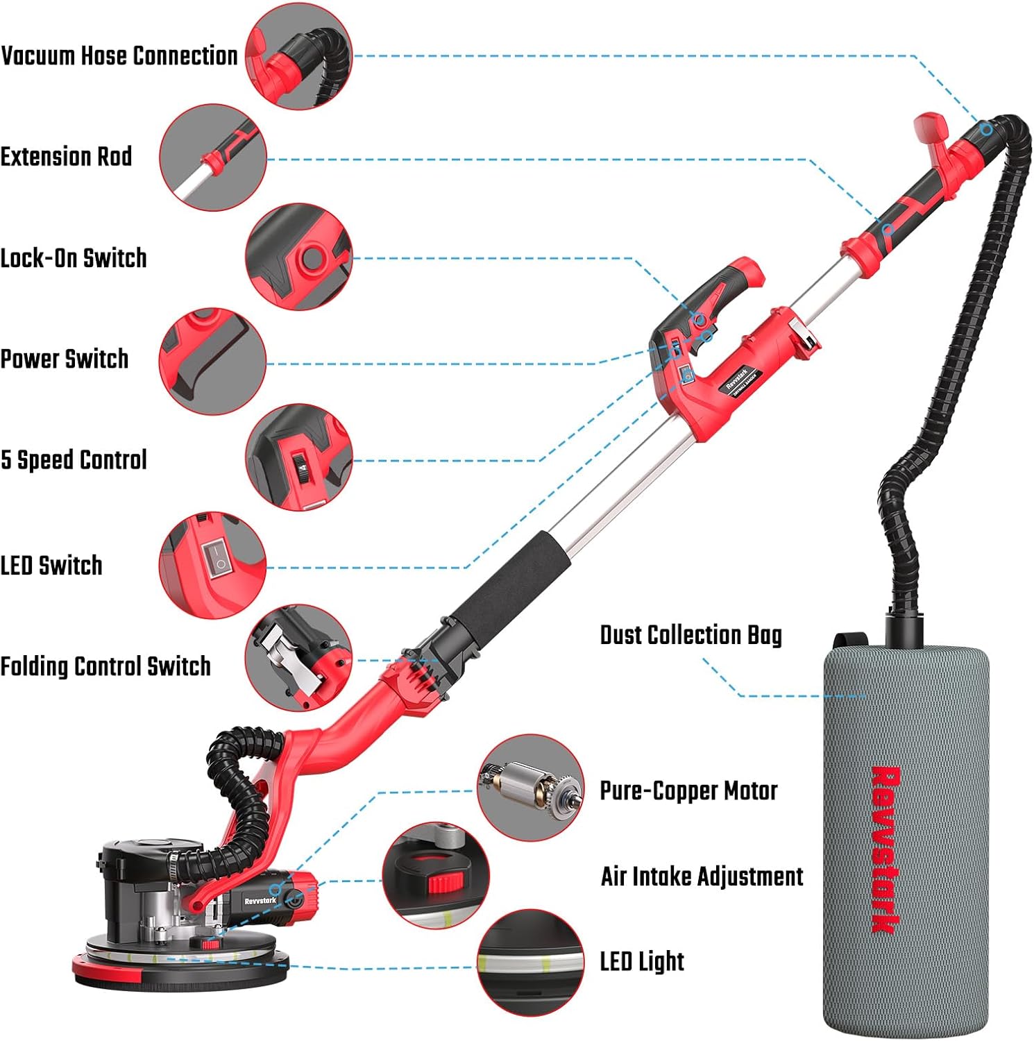 Powerful Electric Drywall Sander 7.5Amp w/ LED Light & Dust Collection